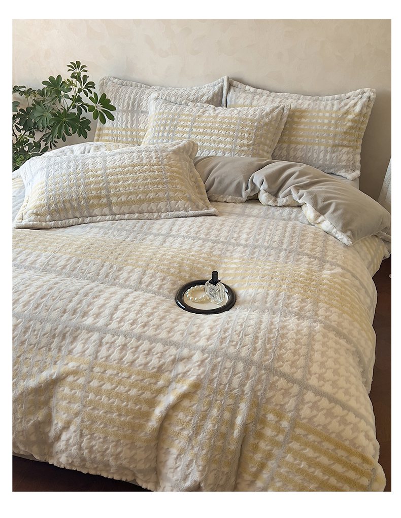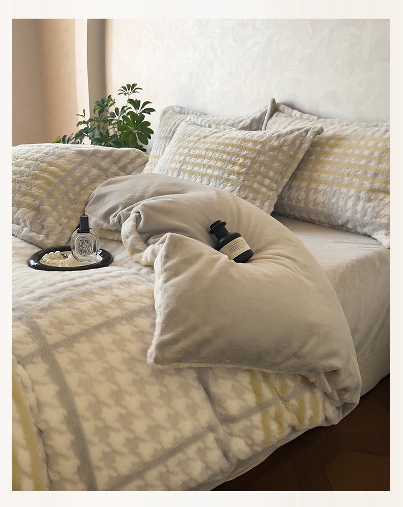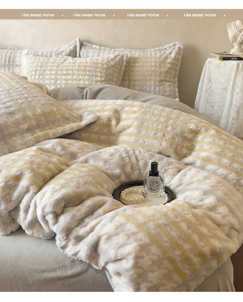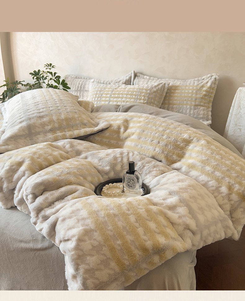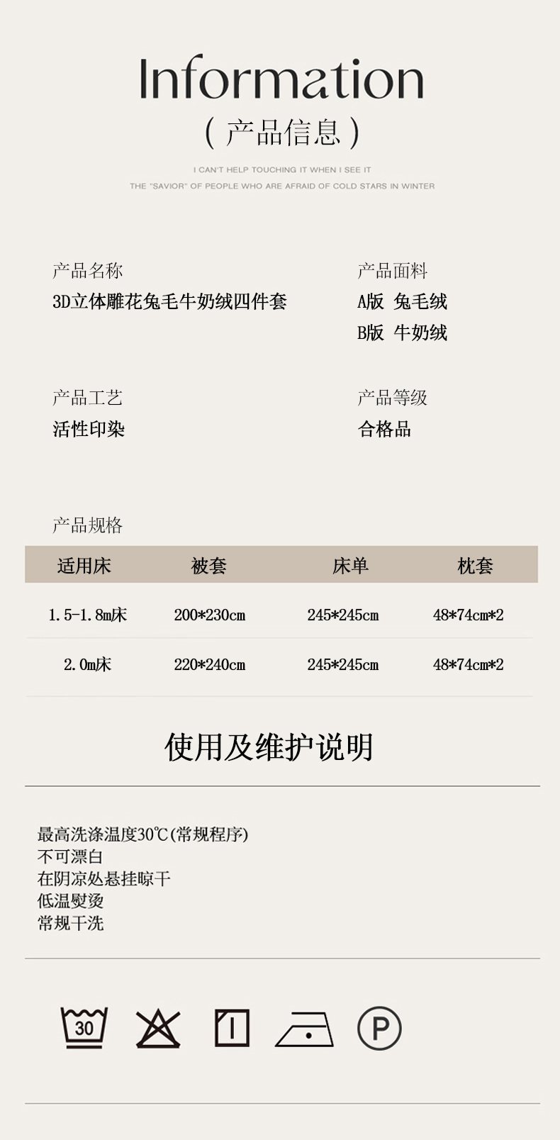 当前位置: 91家纺网 > 商品网购 > 床品套件 > 四件套 > 其它四件套 > 昊川家纺 2025新款3D立体兔毛雕花四件套 锦梦-灰
