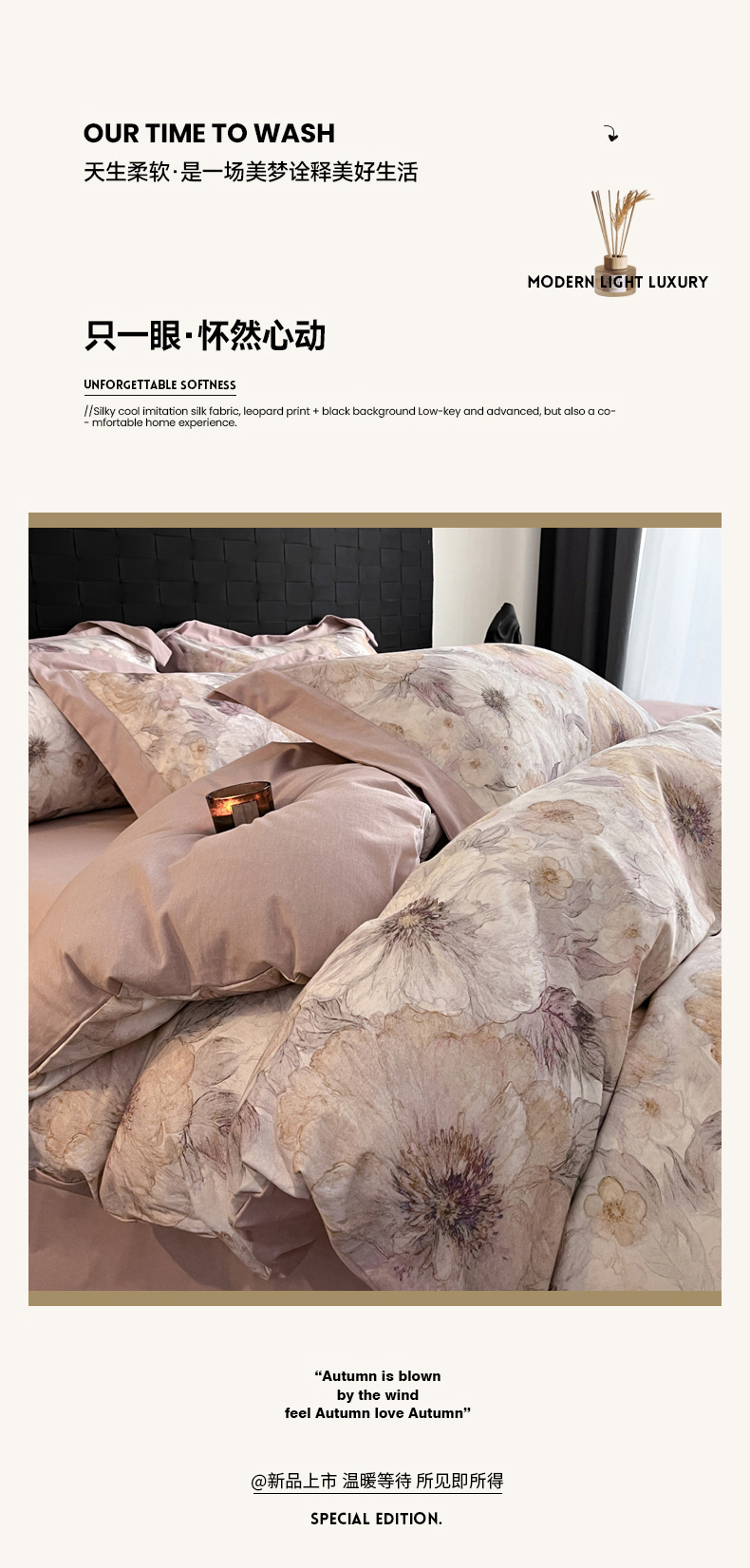 当前位置: 91家纺网 > 商品网购 > 床品套件 > 四件套 > 全棉普通四件套 > 慕晨 2025新款全棉纯棉磨毛轻奢数码印花直播热款四件套 轻织漫冬