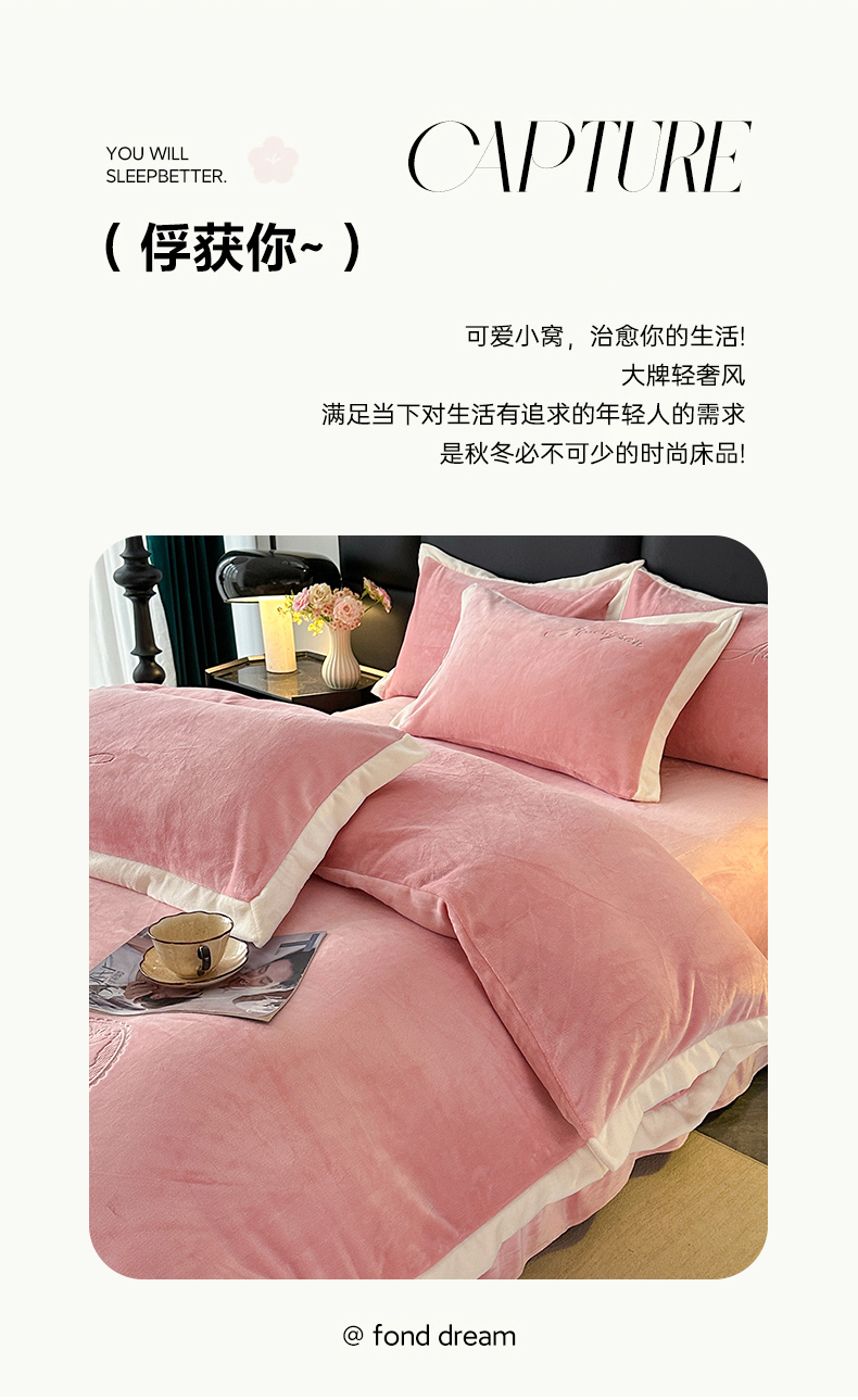 (总)梓之赫 2025新款保暖舒适牛奶绒印花夹棉床盖四件套,爱恋,豹纹,花盏-白,花盏-黑,眷恋,如约,心愿,约定