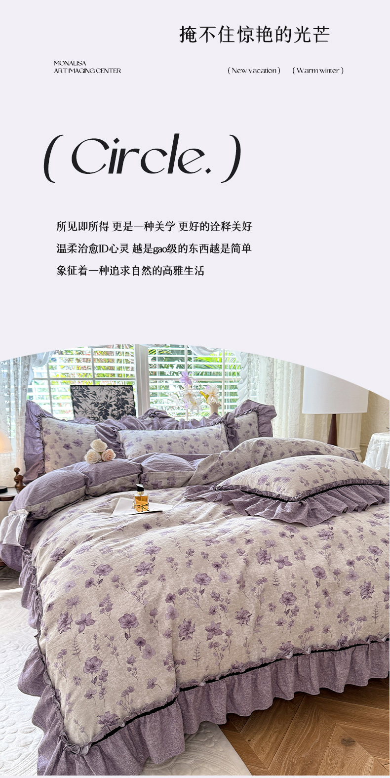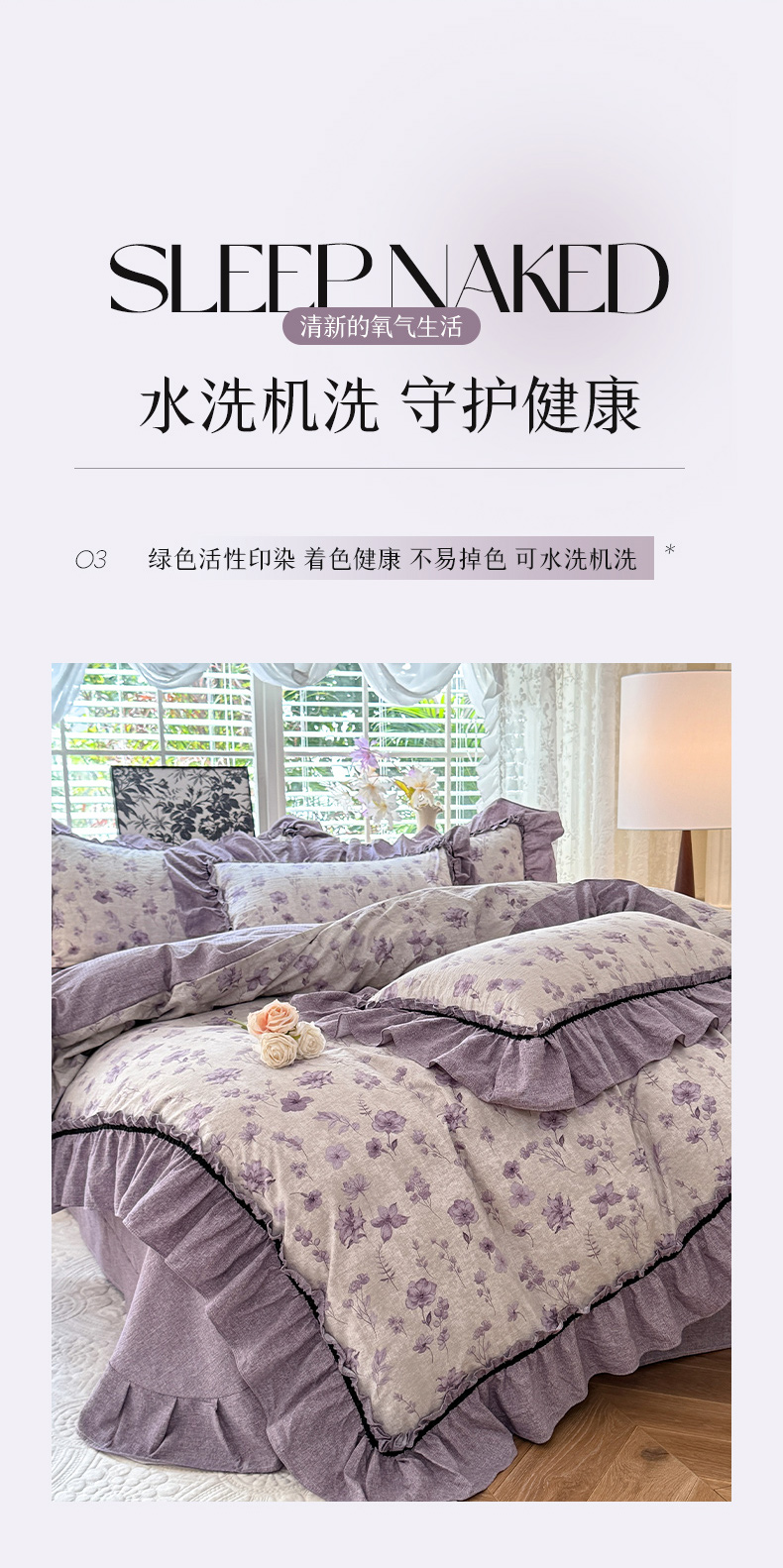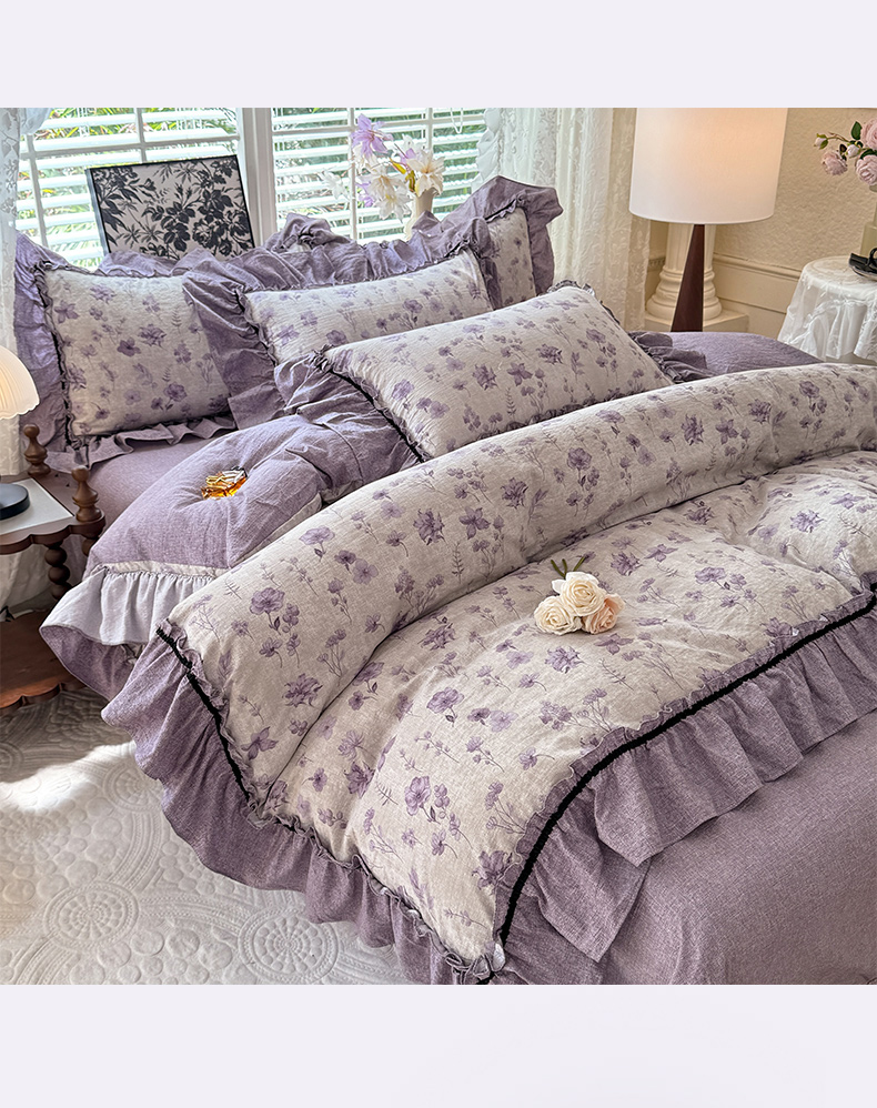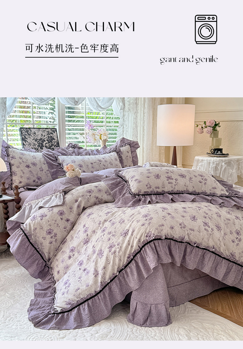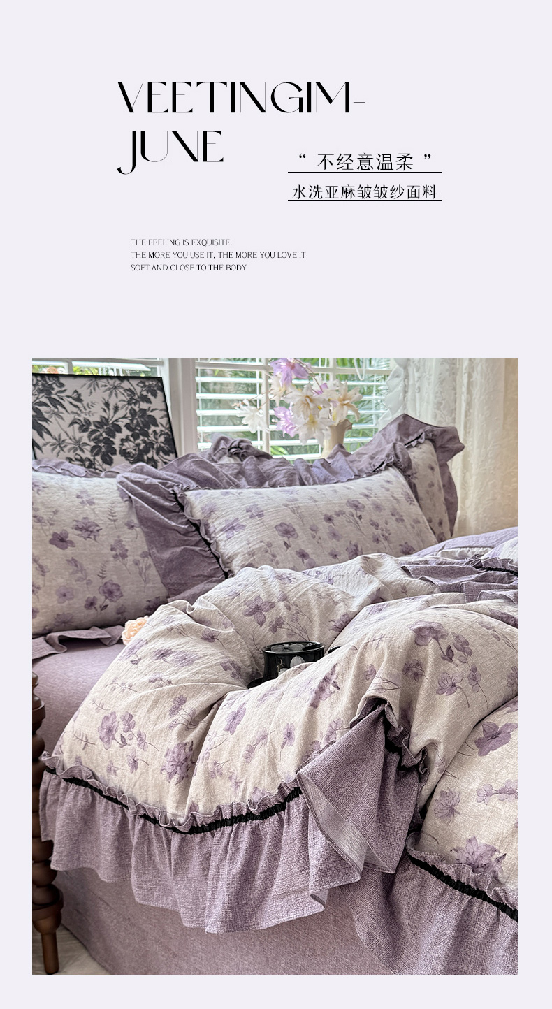 (总)唐人居 2026新款水洗棉花边床盖四件套-花影系列,花影-浅紫,花影-豆沙,花影-玫红,花影-暖橘,花影-苹果绿,花影-浅粉,花影-浅灰