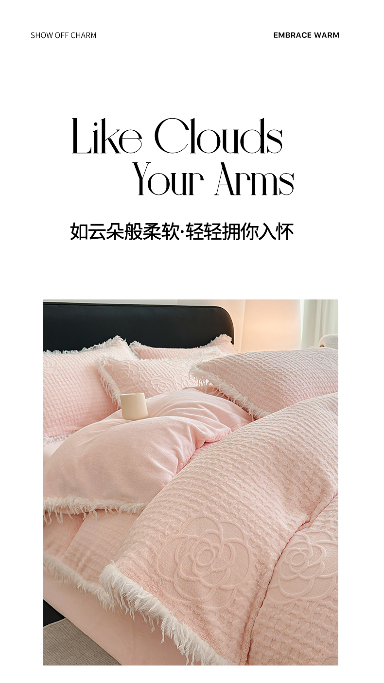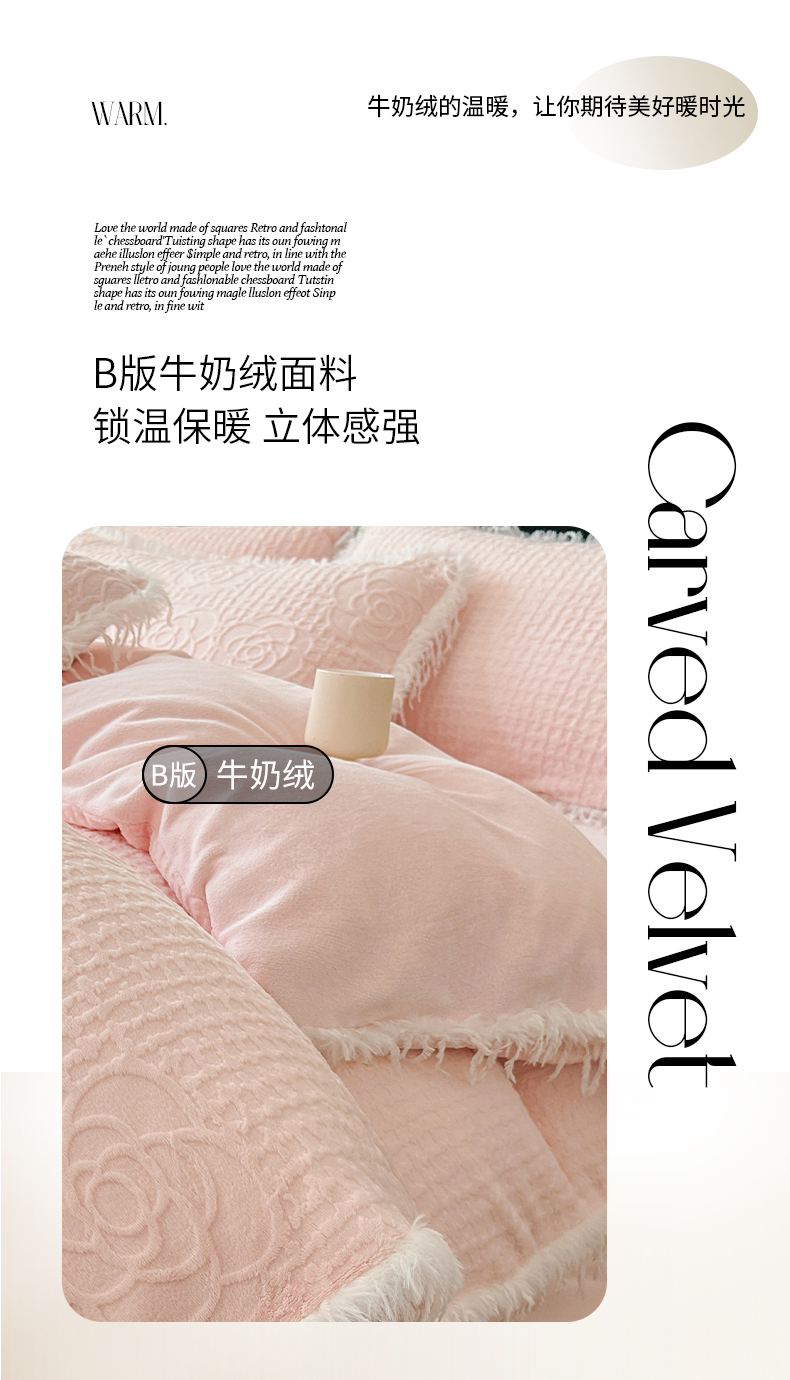 当前位置: 91家纺网 > 商品网购 > 床品套件 > 四件套 > 牛奶绒四件套 > (总)极简 2025新款立体雕花牛奶绒碎边四件套-米娅
