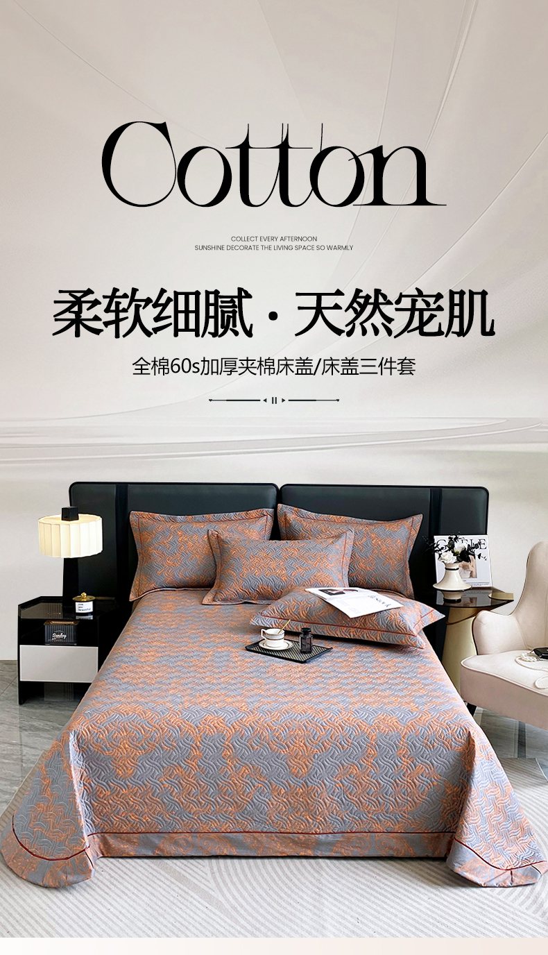 商品名称:(总)畅畅家纺 2025春夏款13372全棉纯棉活性印花床盖夹棉加厚绗缝防滑床罩