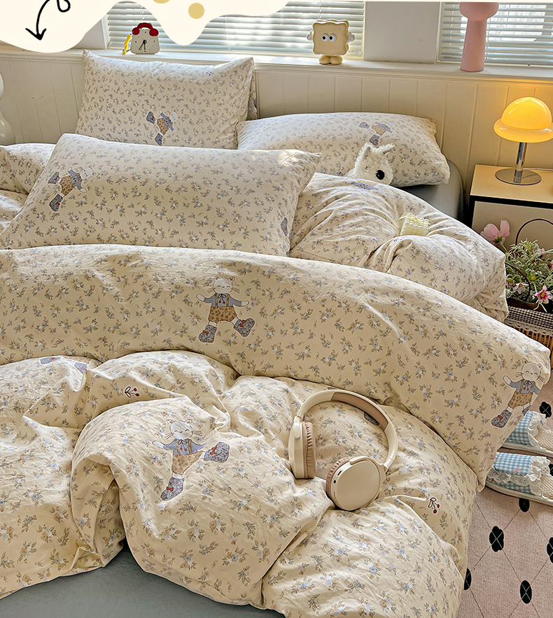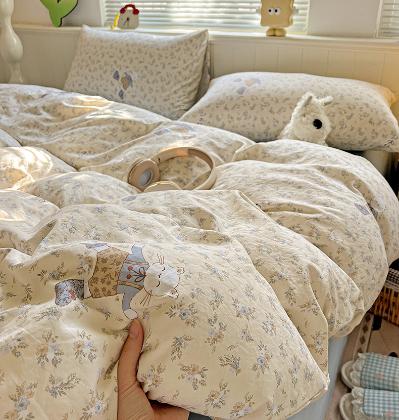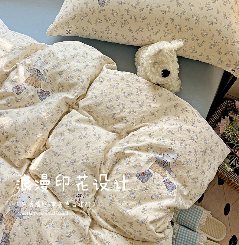 当前位置: 91家纺网 > 商品网购 > 床品套件 > 四件套 > 水洗棉四件套 > 暖芯优选 2025新款加厚爆款小布袋韩国古法水洗棉床单学生三件套床笠款四件套 碎花喵语