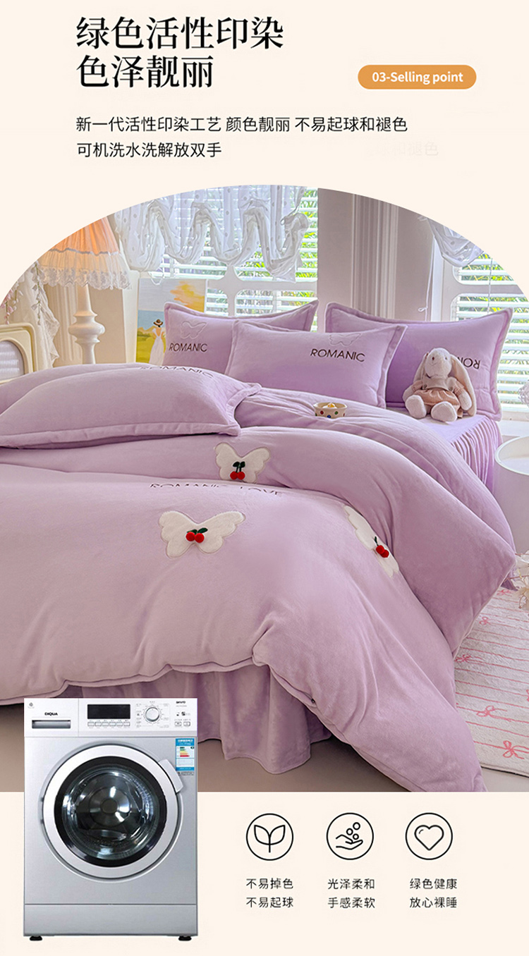 漫布云2025秋冬新款11斤230g全消光牛奶绒夹棉床盖款四件套纯色蕾丝花边刺绣床裙款床盖,蝶恋花-梦幻紫, 蝶恋花-嫩黄 ,蝶恋花-新芽绿, 蝶恋花-婴儿蓝, 蝶恋花-樱花粉