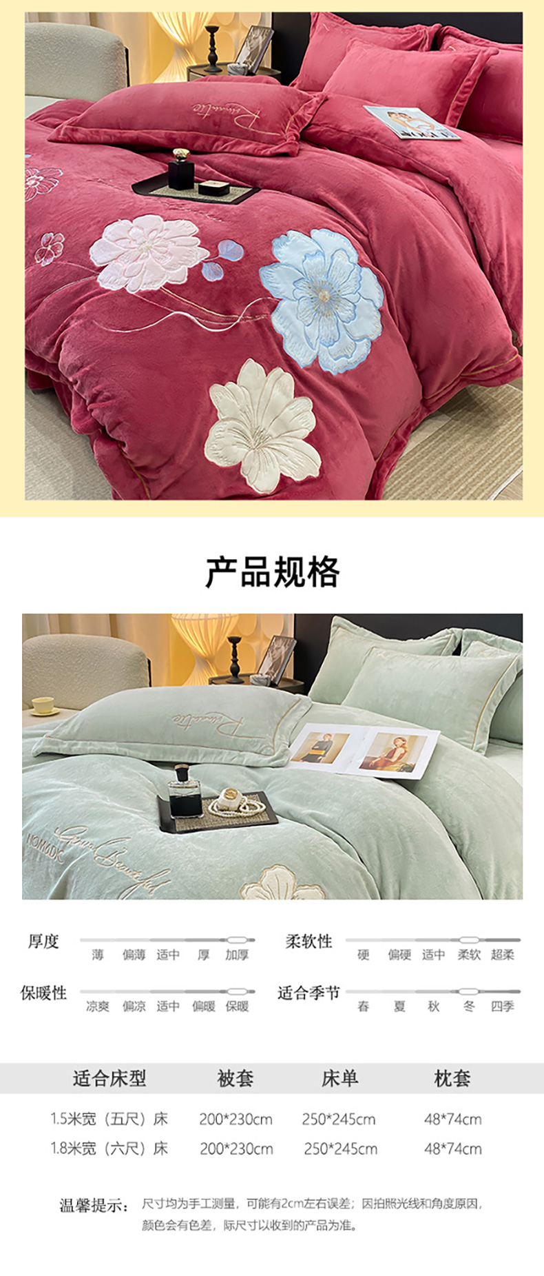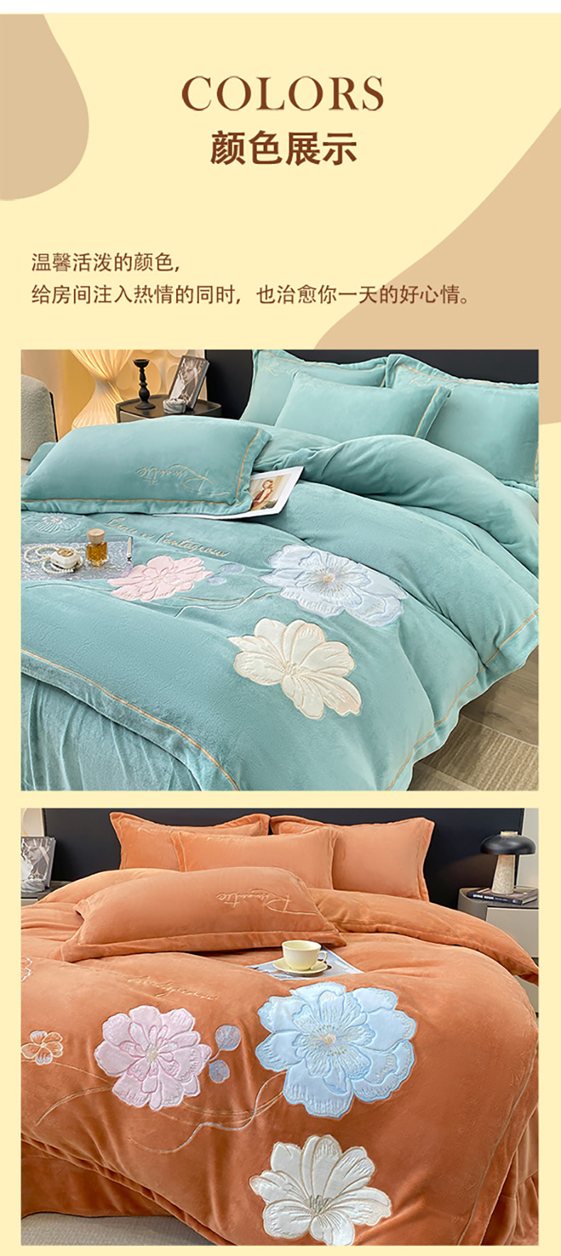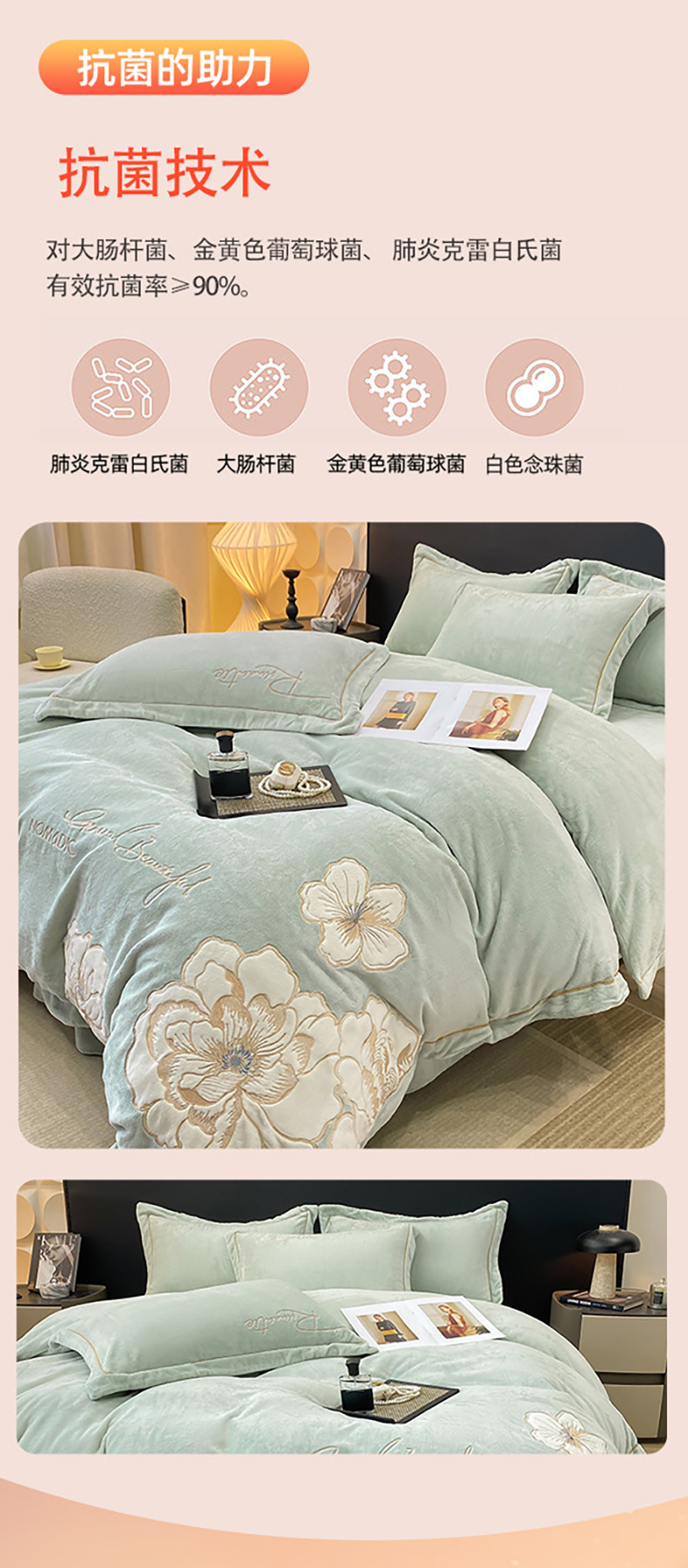当前位置: 91家纺网 > 商品网购 > 床品套件 > 四件套 > 牛奶绒四件套 > 悦织湾家纺 2025新款9斤重牛奶绒四件套纯色贴布绣人件富贵系列240克重高密保暖轻奢时尚床上用品4件套 人间富贵-草蓝