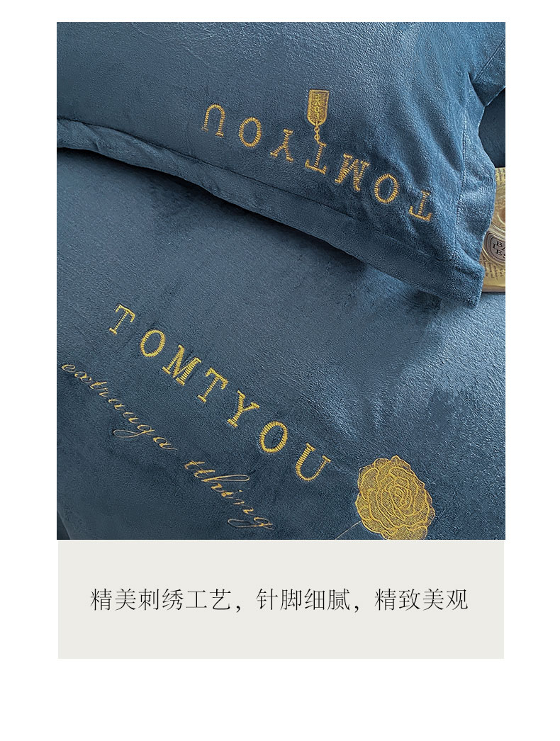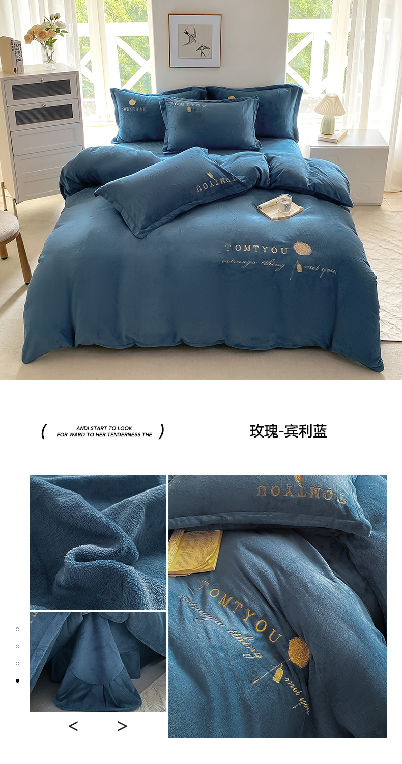 商品名称:悦织湾家纺 2025新款绣花200克重牛奶绒四件套刺绣3.5万针7斤重高密加厚保暖跨境专供外贸出口电商热销款 玫瑰-宾利蓝
