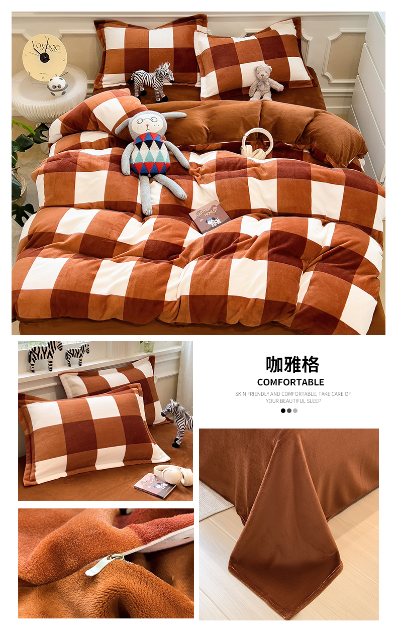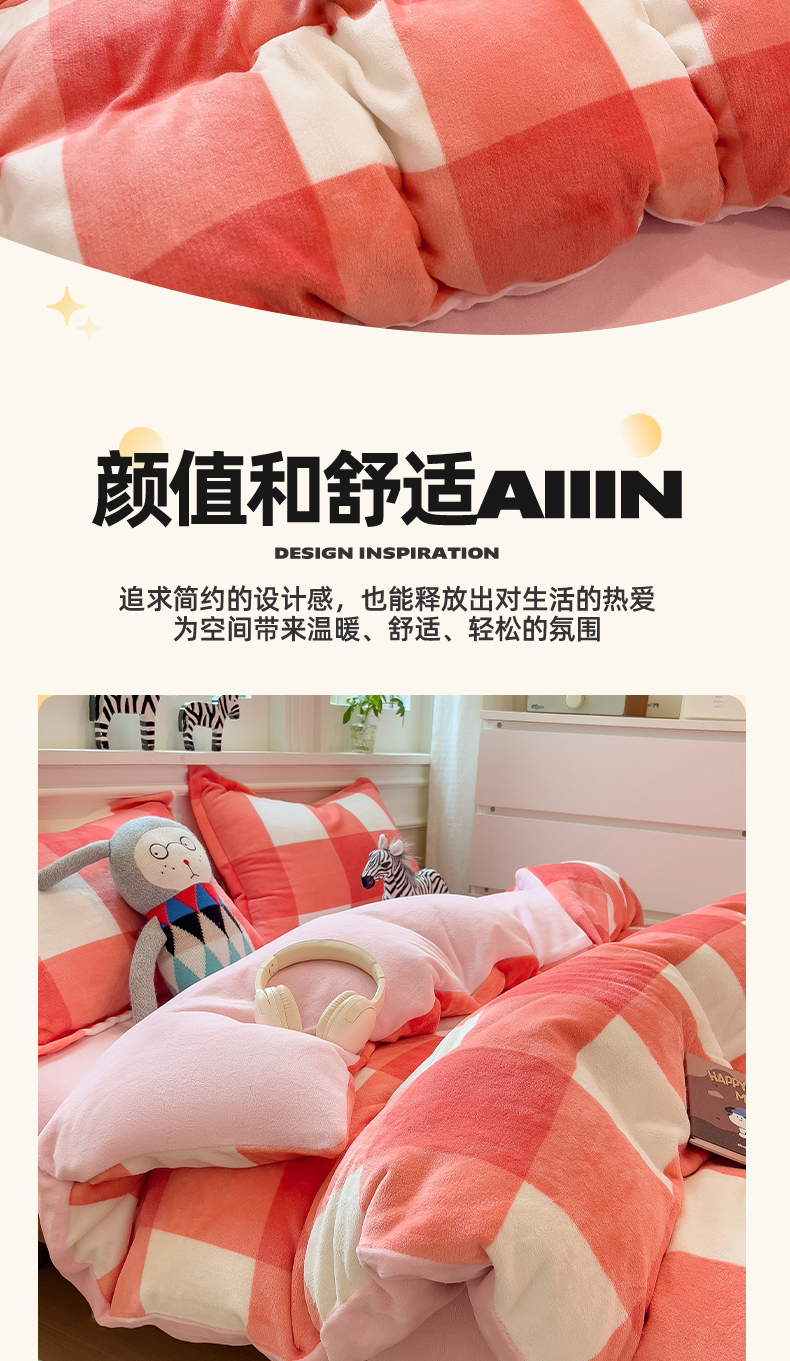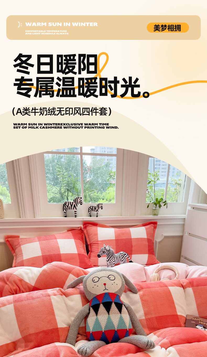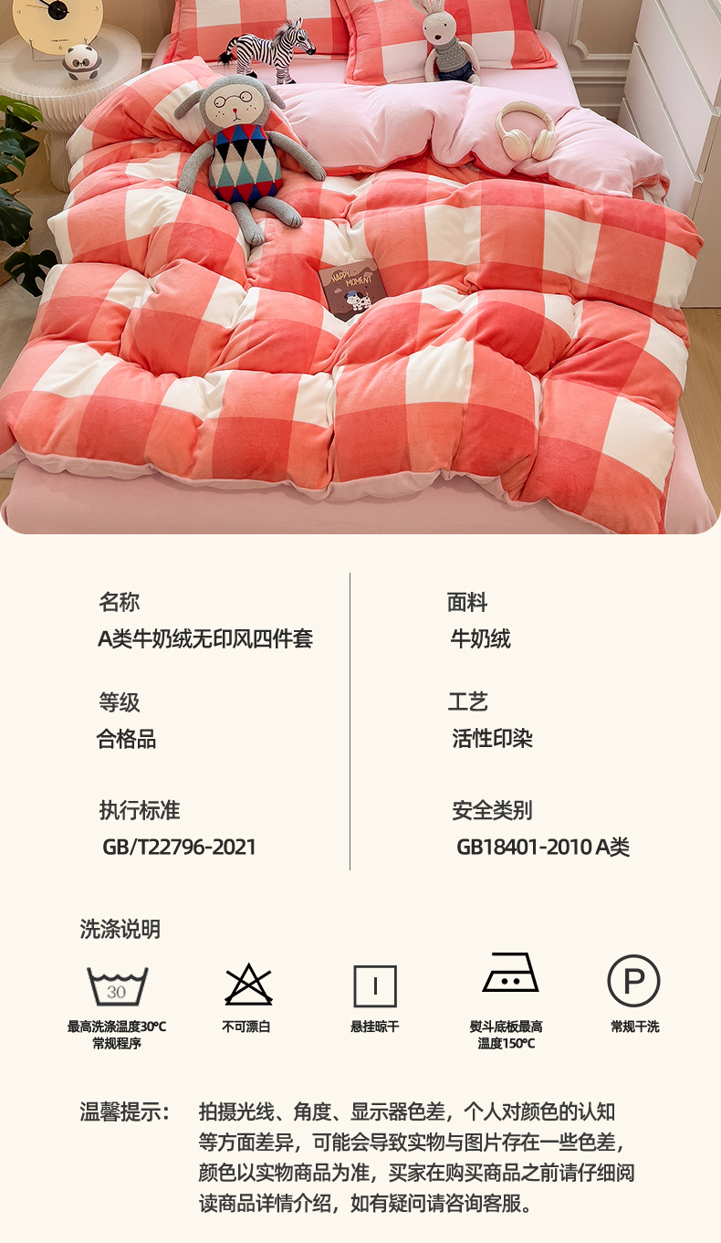 当前位置: 91家纺网 > 商品网购 > 床品套件 > 四件套 > 牛奶绒四件套 > 曲之慕 2025新款A类牛奶绒简约无印风格子四件套 粉大格