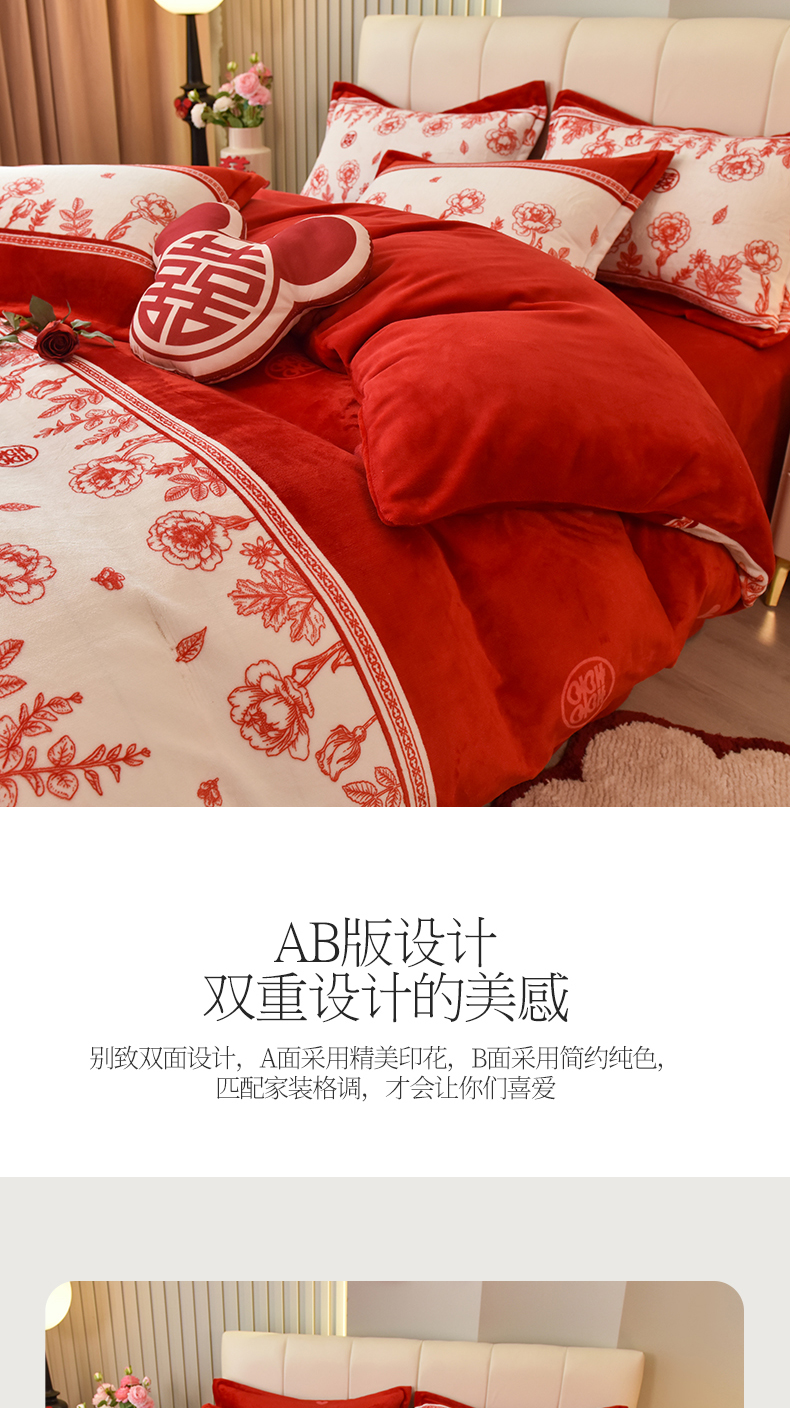 商品名称:曲之慕 2025新款高克重牛奶绒简约婚庆四件套 浪漫满屋