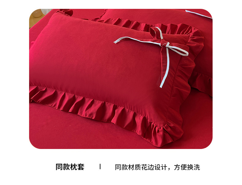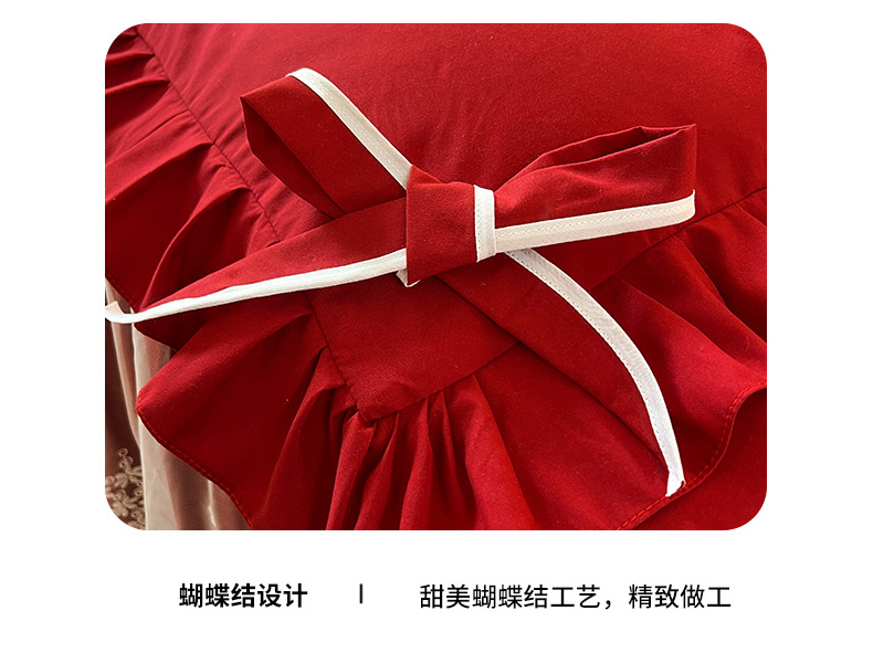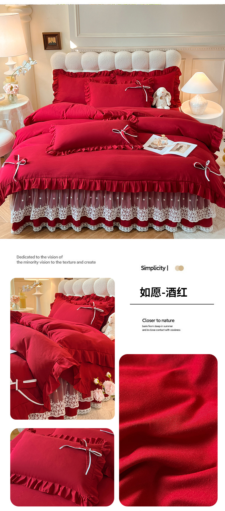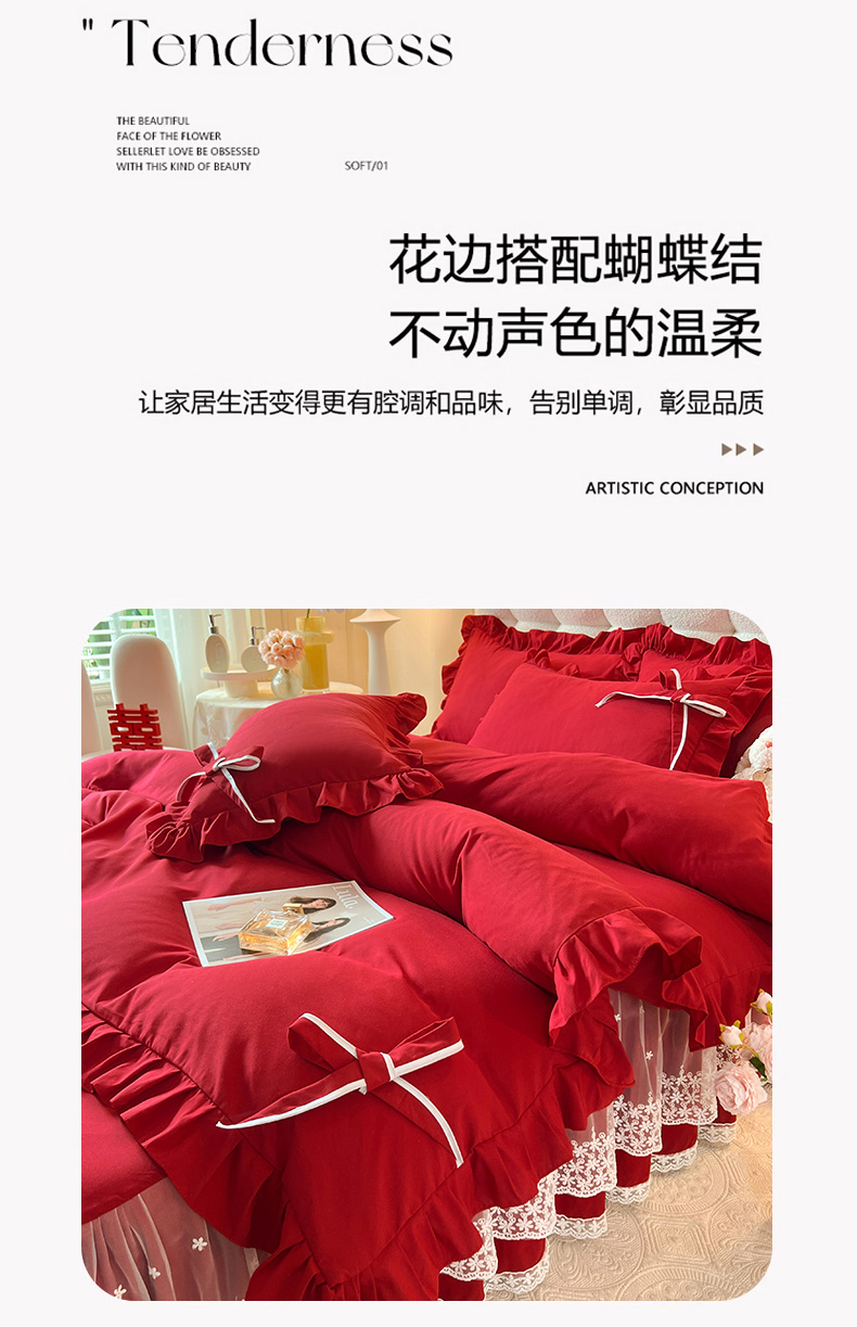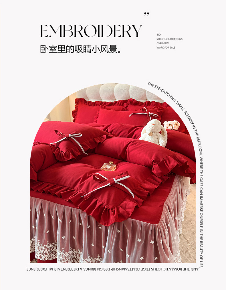 后庭寝室 2025新款亲肤舒适柔软亲肤花边蝴蝶结四件套-如愿 如愿-酒红
