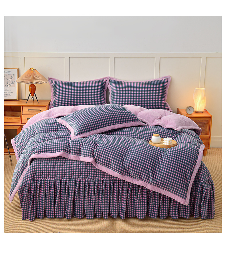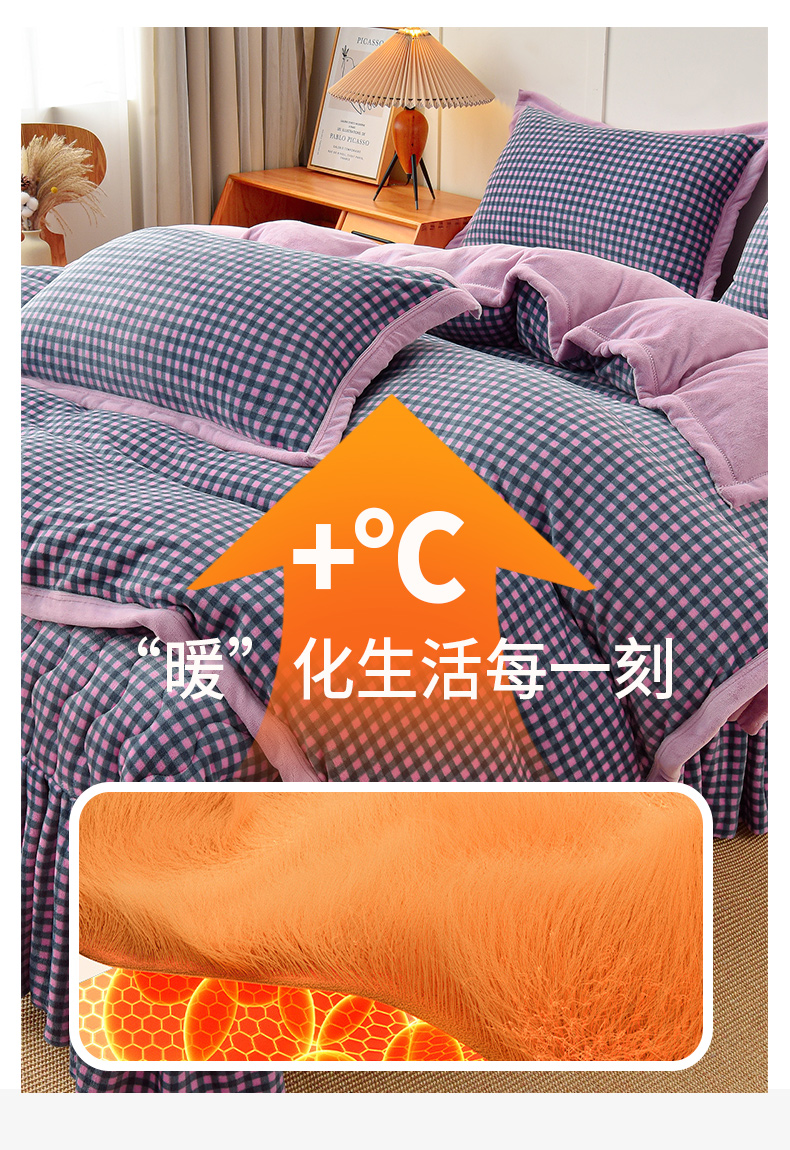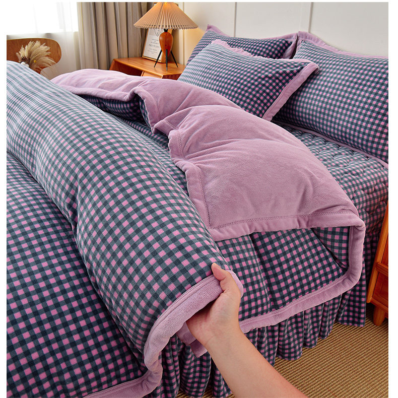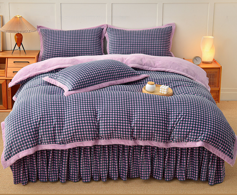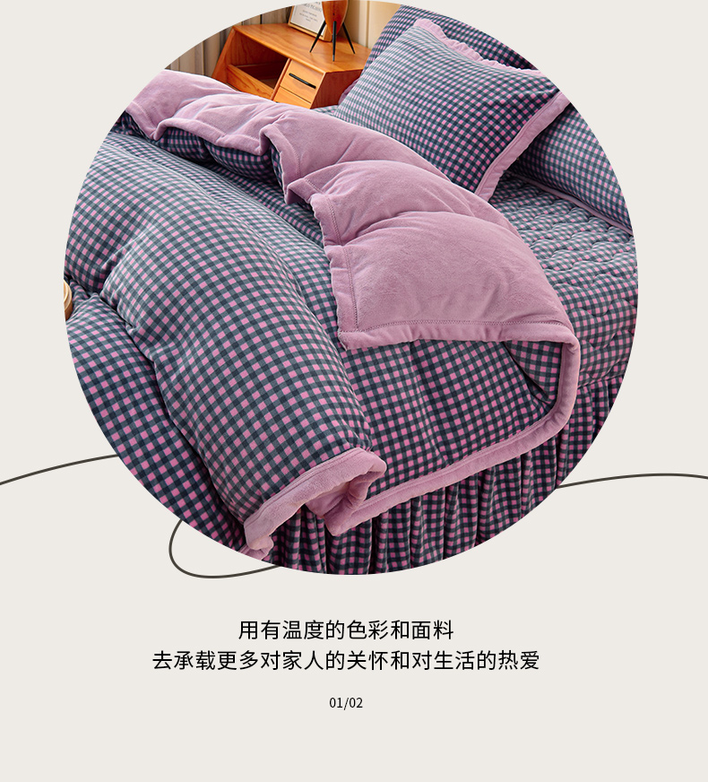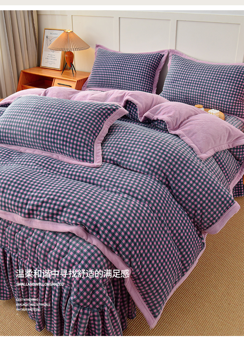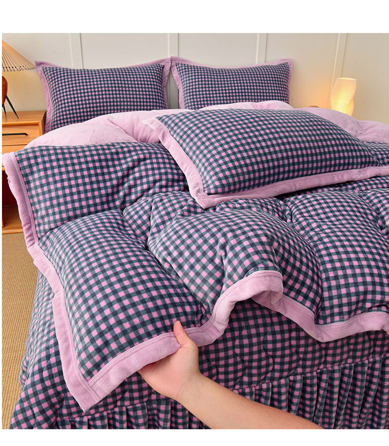 当前位置: 91家纺网 > 商品网购 > 床品套件 > 四件套 > 牛奶绒四件套 > 茉保家纺 2024新款无印风款牛奶绒床盖四件套 紫小格