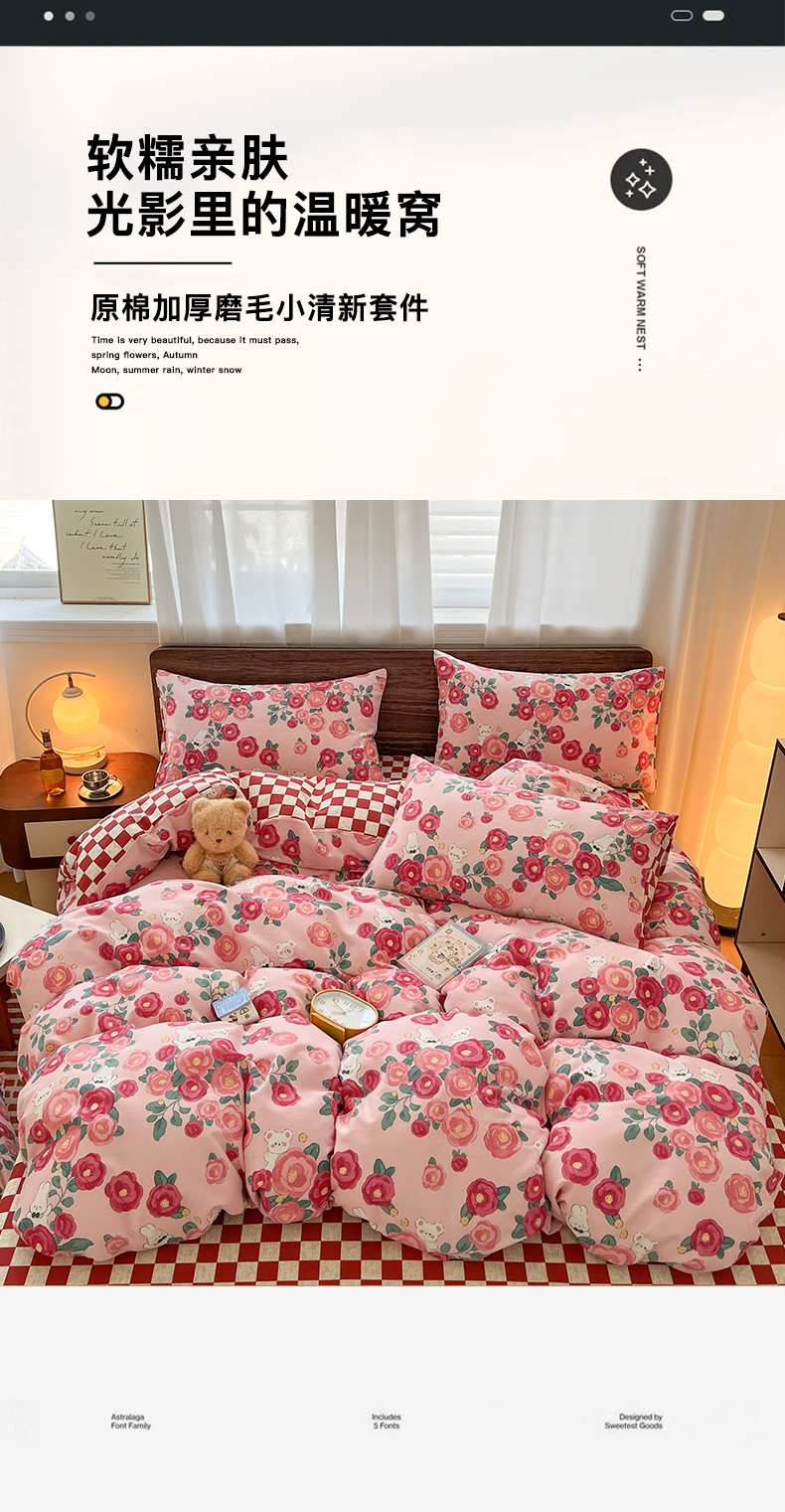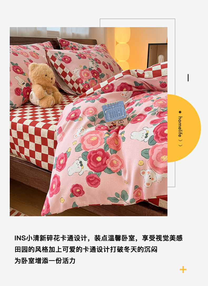 当前位置: 91家纺网 > 商品网购 > 床品套件 > 四件套 > 普通磨毛四件套 > 典曼家纺 2025新款原棉磨毛印花四件套 花期