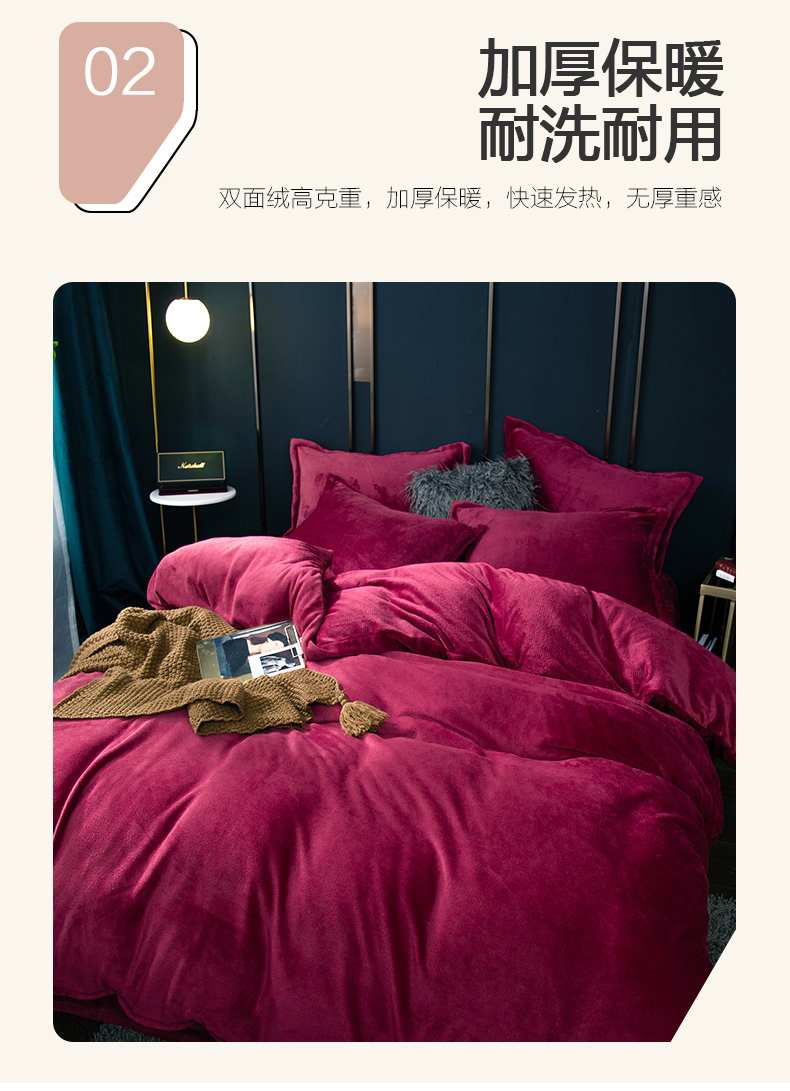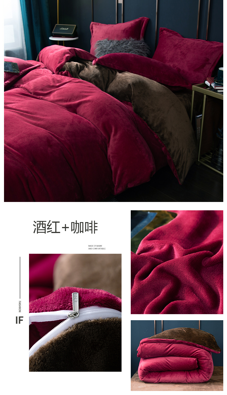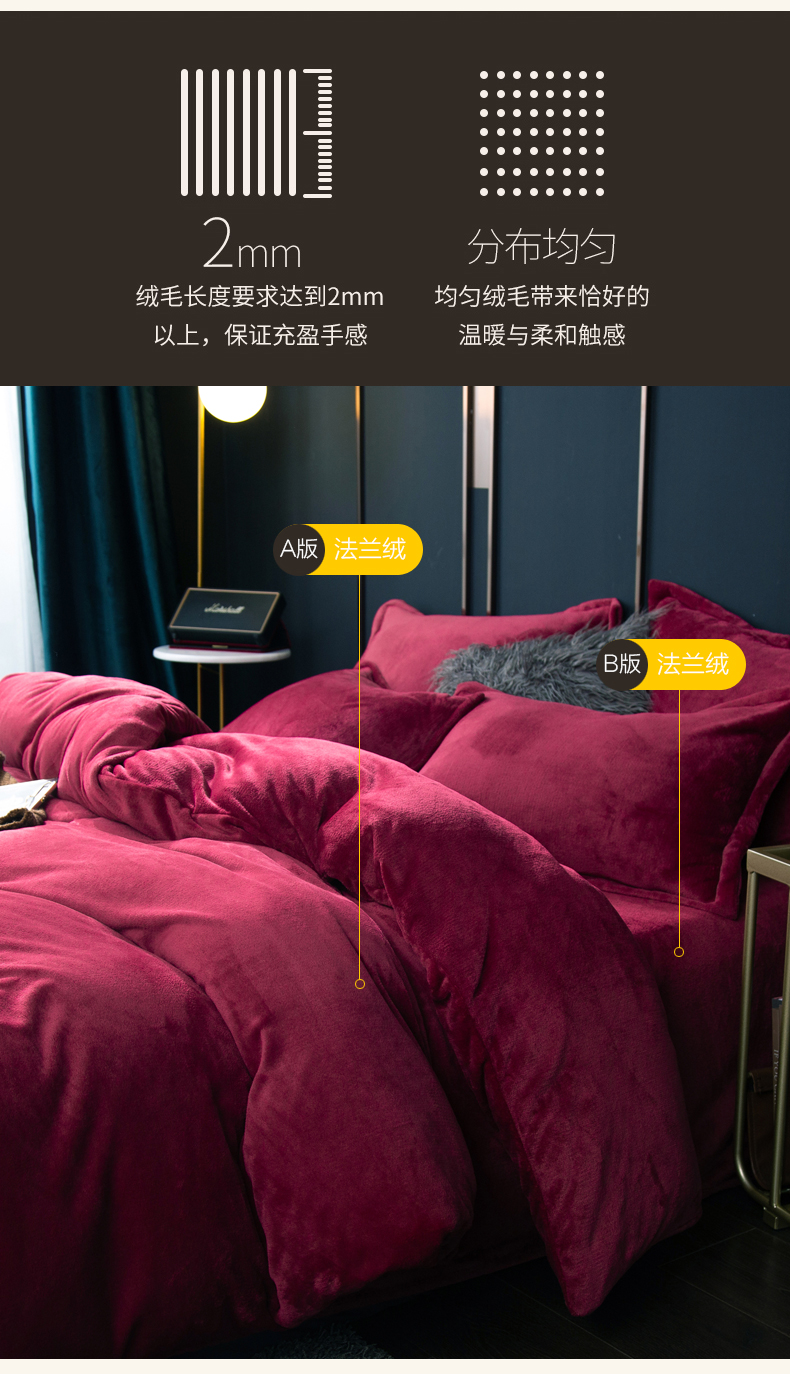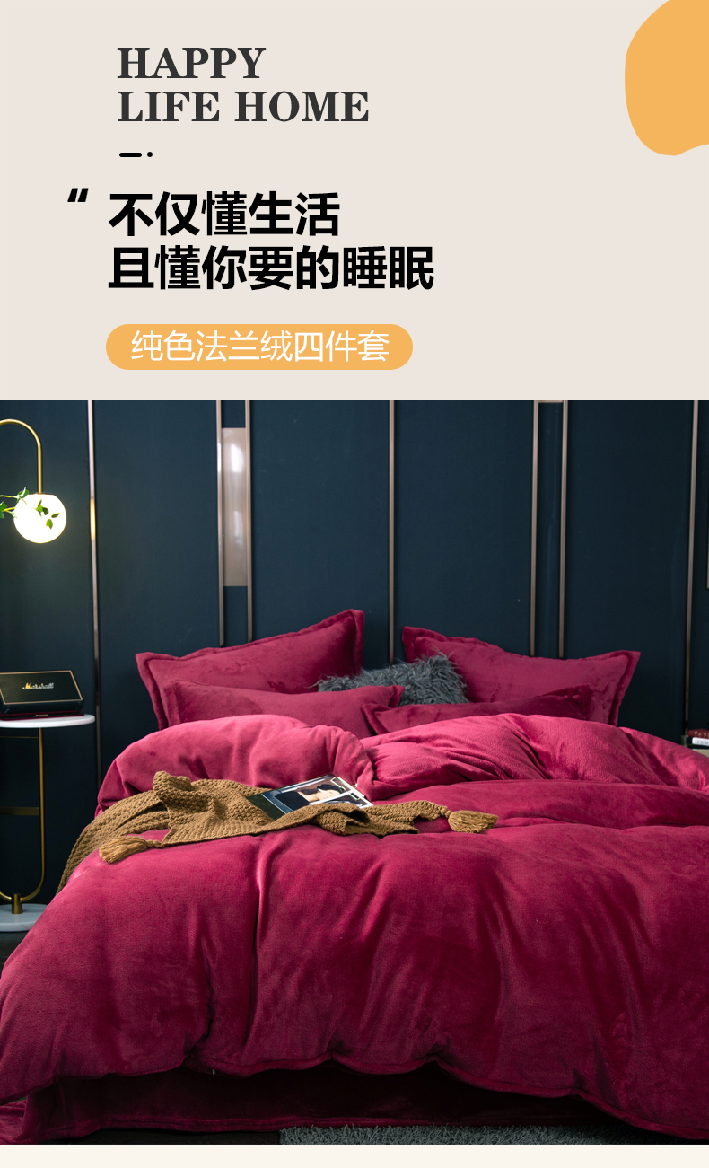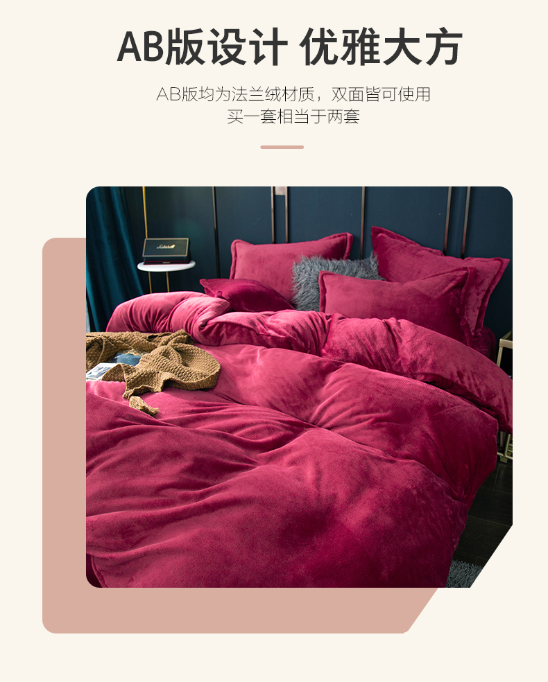 当前位置: 91家纺网 > 商品网购 > 床品套件 > 四件套 > 牛奶绒四件套 > 兰紫橙家纺 2025新款双面绒纯色双拼牛奶绒四件套 酒红