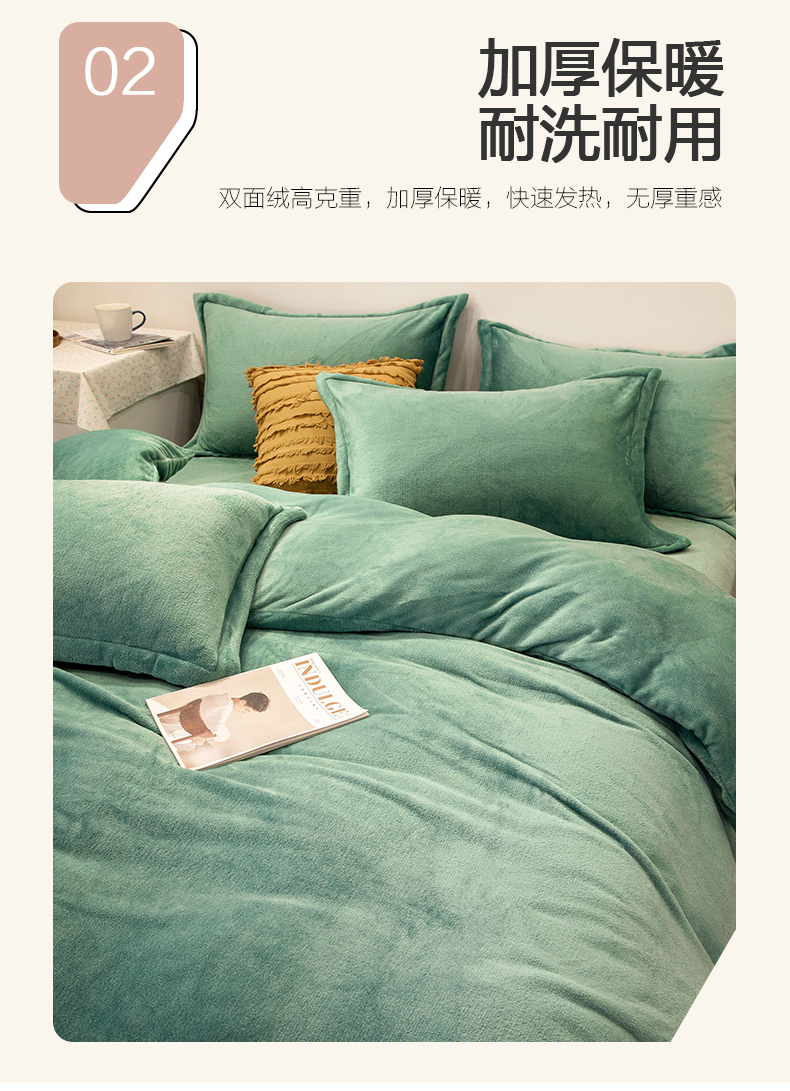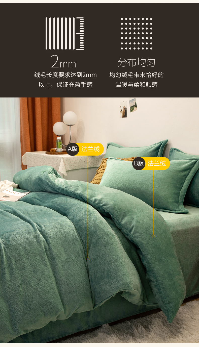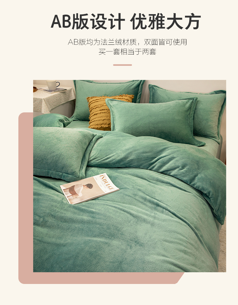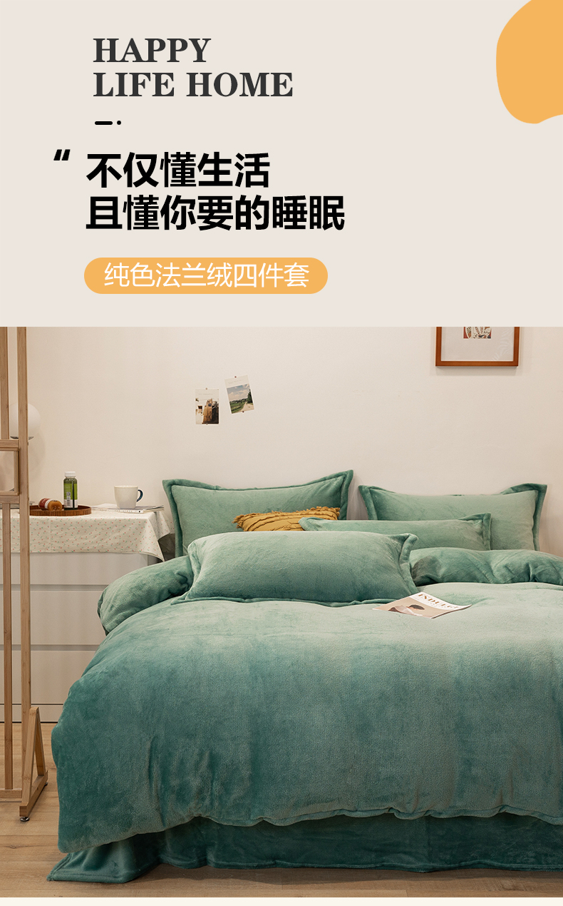 当前位置: 91家纺网 > 商品网购 > 床品套件 > 四件套 > 牛奶绒四件套 > 兰紫橙家纺 2025新款双面绒纯色双拼牛奶绒四件套 竹青