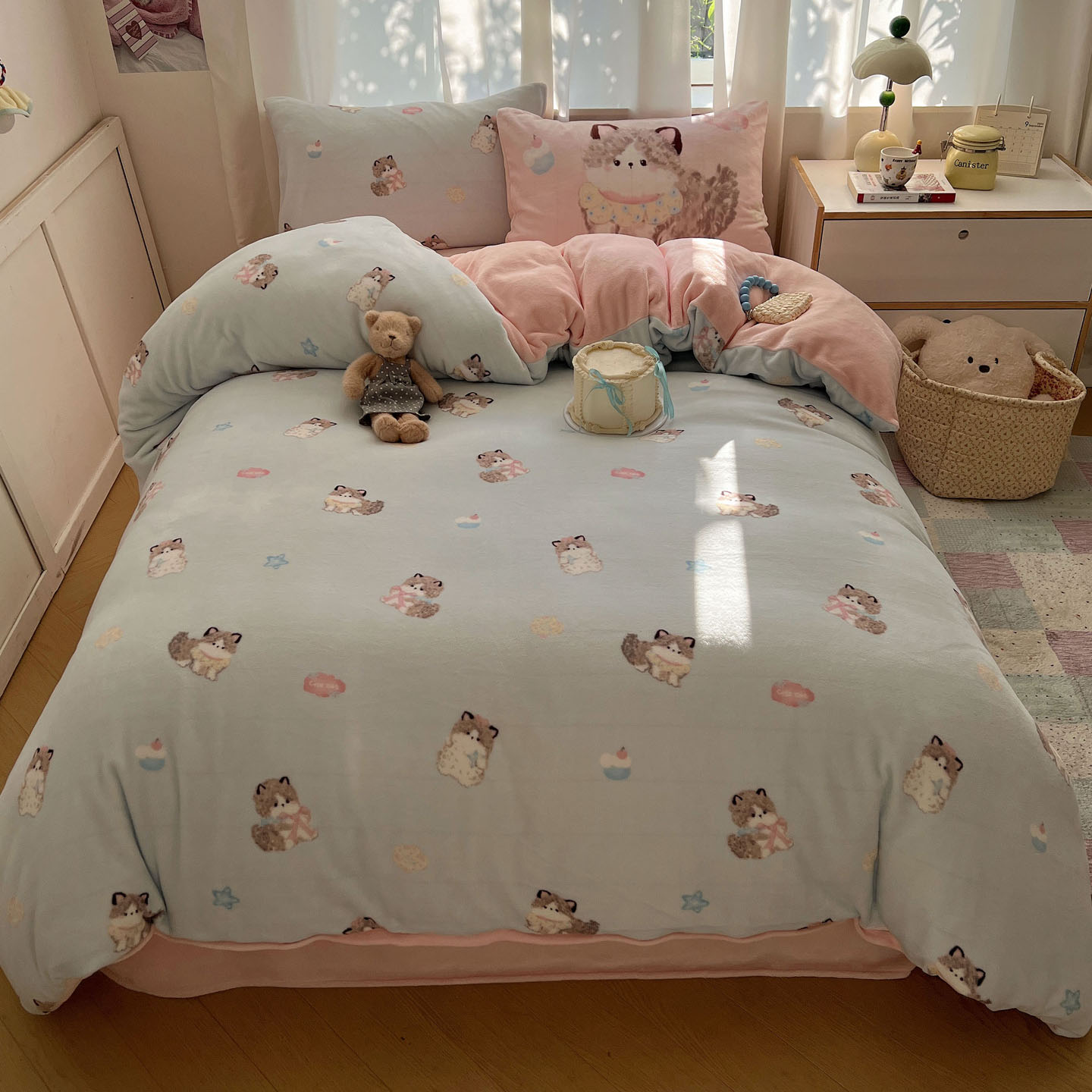 (总)桃喜 2024新款13372学生季全棉宿舍三件套,比熊小狗,波点动物园,波点西高地,狗狗家族,蝴蝶结小兔,蓝色小狗,喵星人,茉莉兔,潘多拉,晚安宝贝,小熊派对