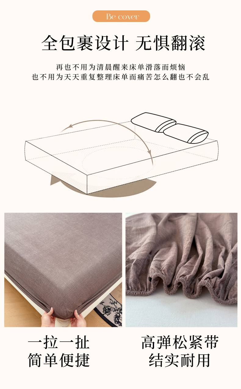 • 91家纺网 家纺一手货源 找家纺 圣比熊 2025新款原麻床笠机洗家用防滑透气四季款床罩床垫床单保护套 慕斯咖