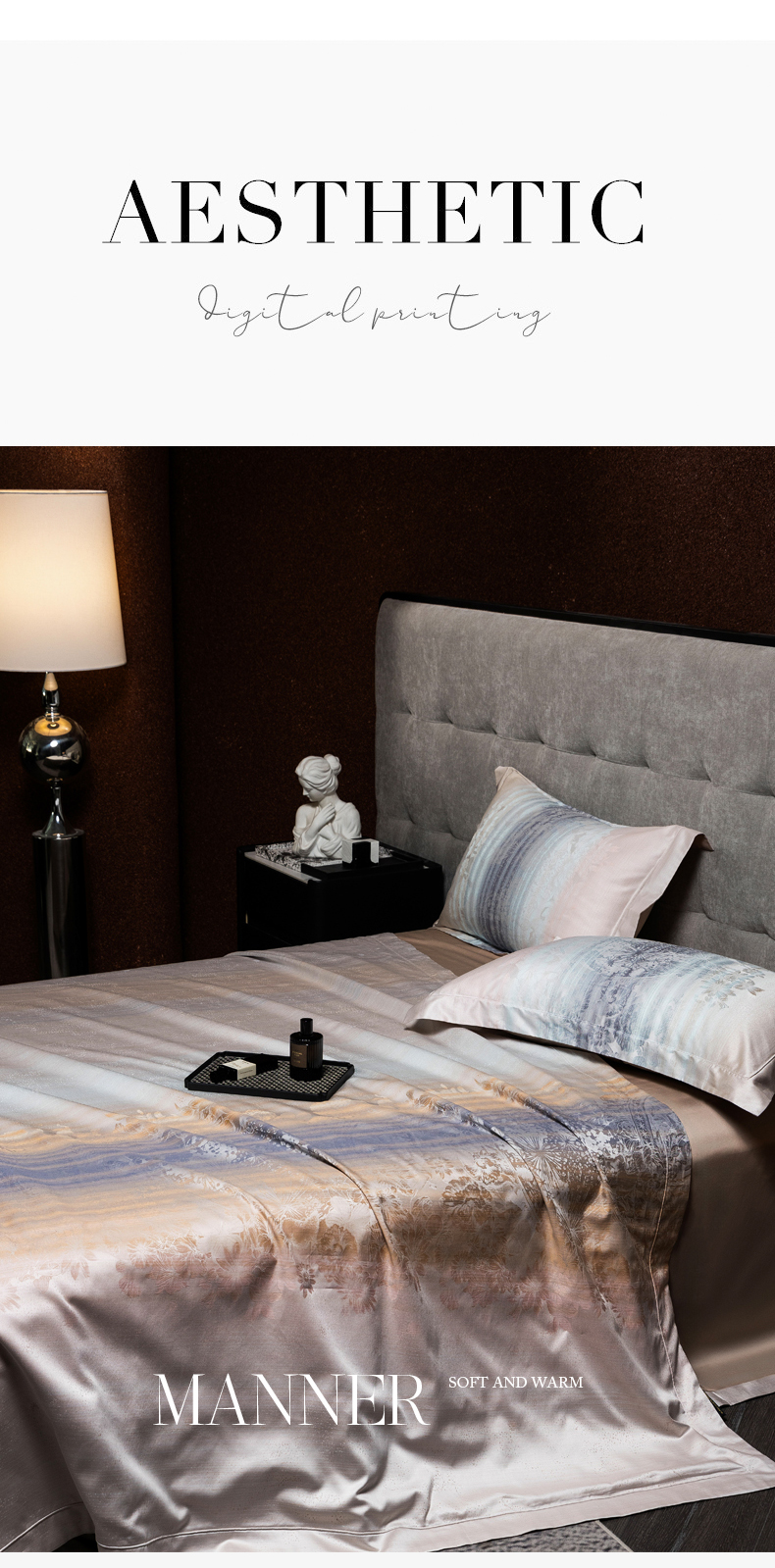 黑白森林2024款 50X50S高支天丝棉数码印花四件套天丝全棉,格伦黄,格伦绿,若瑶灰,羽笛蓝