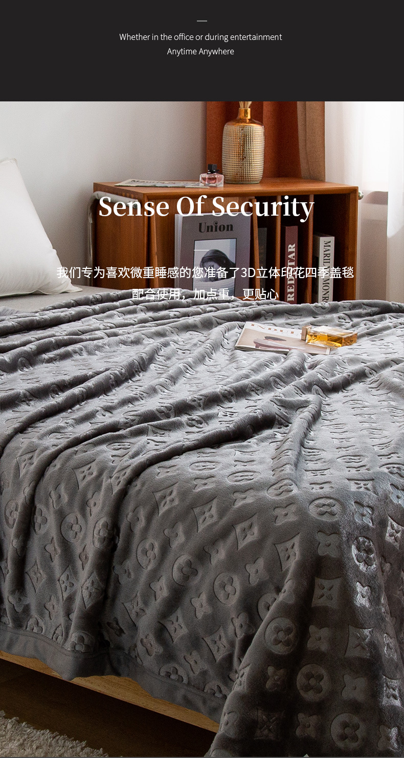 商品名称:梵克保罗 2025新款3D立体印花四季盖毯400克 铜钱灰