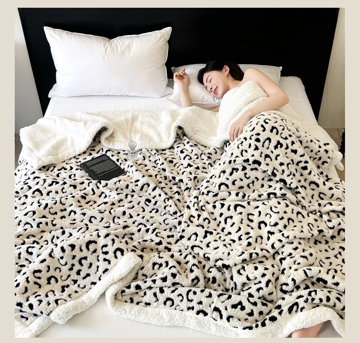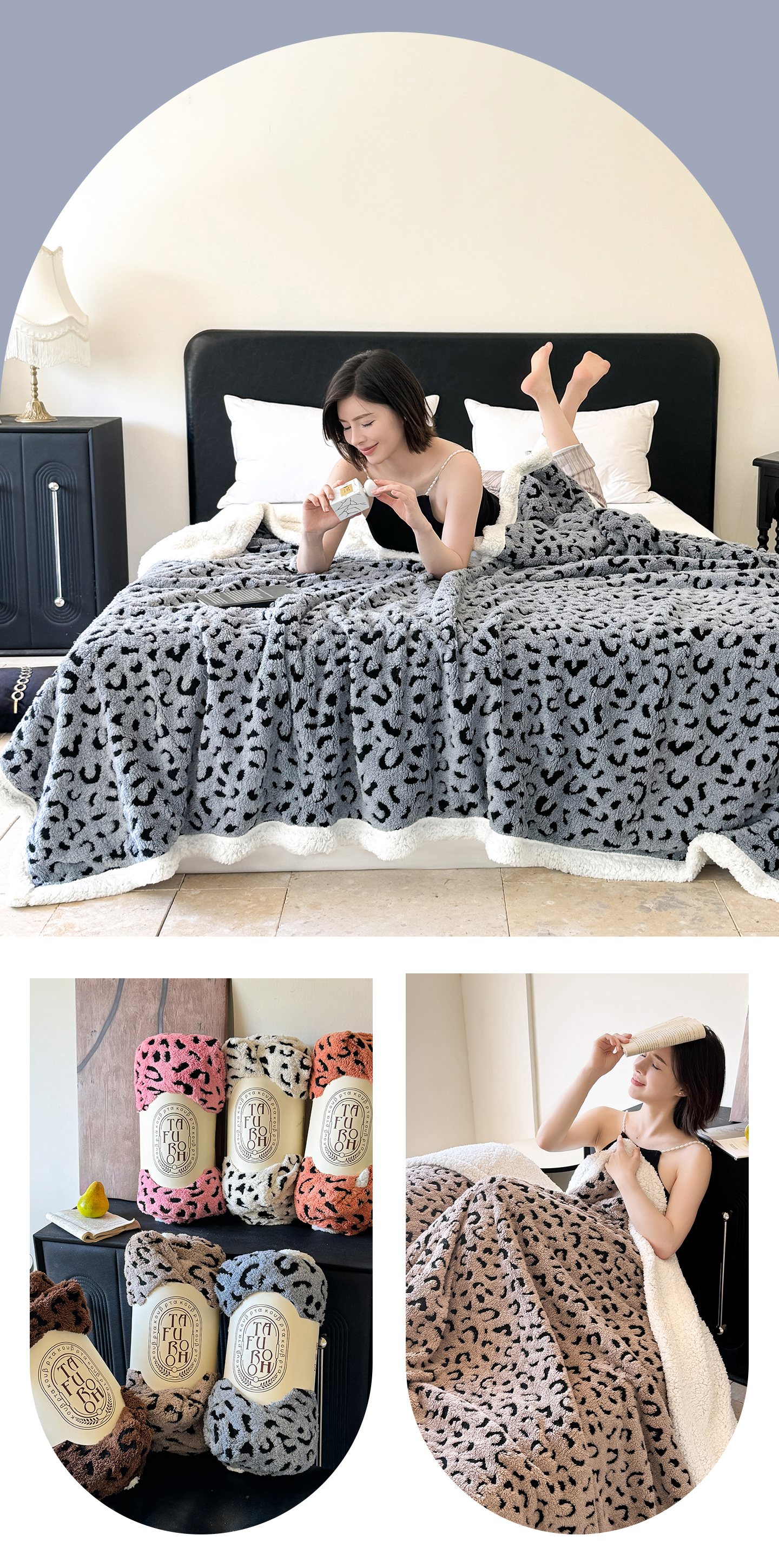 (总)梵克保罗 2025新款双层阳离子豹纹提花塔芙绒羊羔绒跨境双层毛毯盖毯毯子