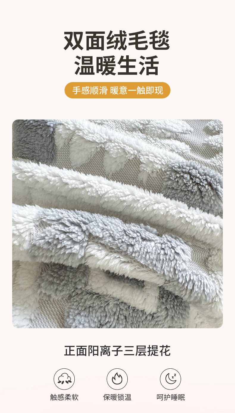 商品名称:梵克保罗 2025新款轻奢阳离子提花镂空塔芙绒羊羔绒保暖午睡双层毛毯办公室盖毯 浅灰