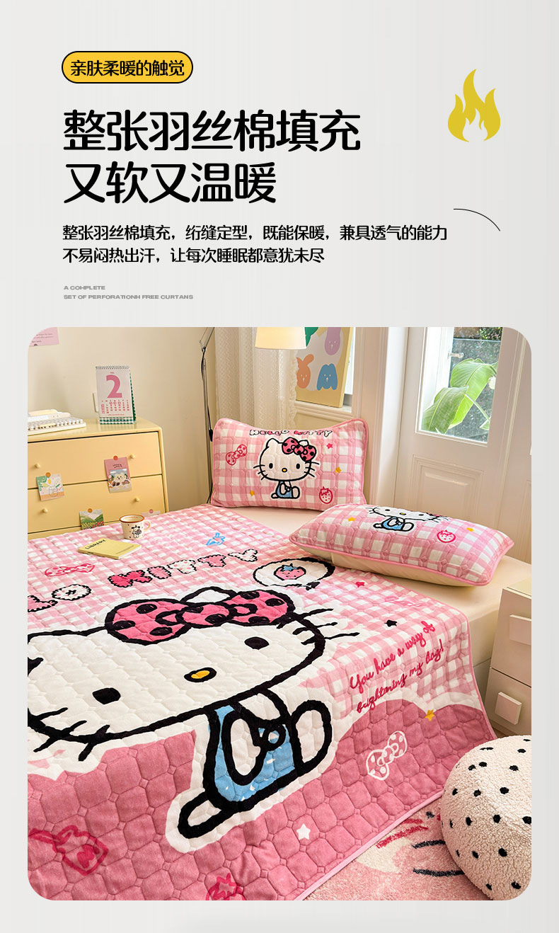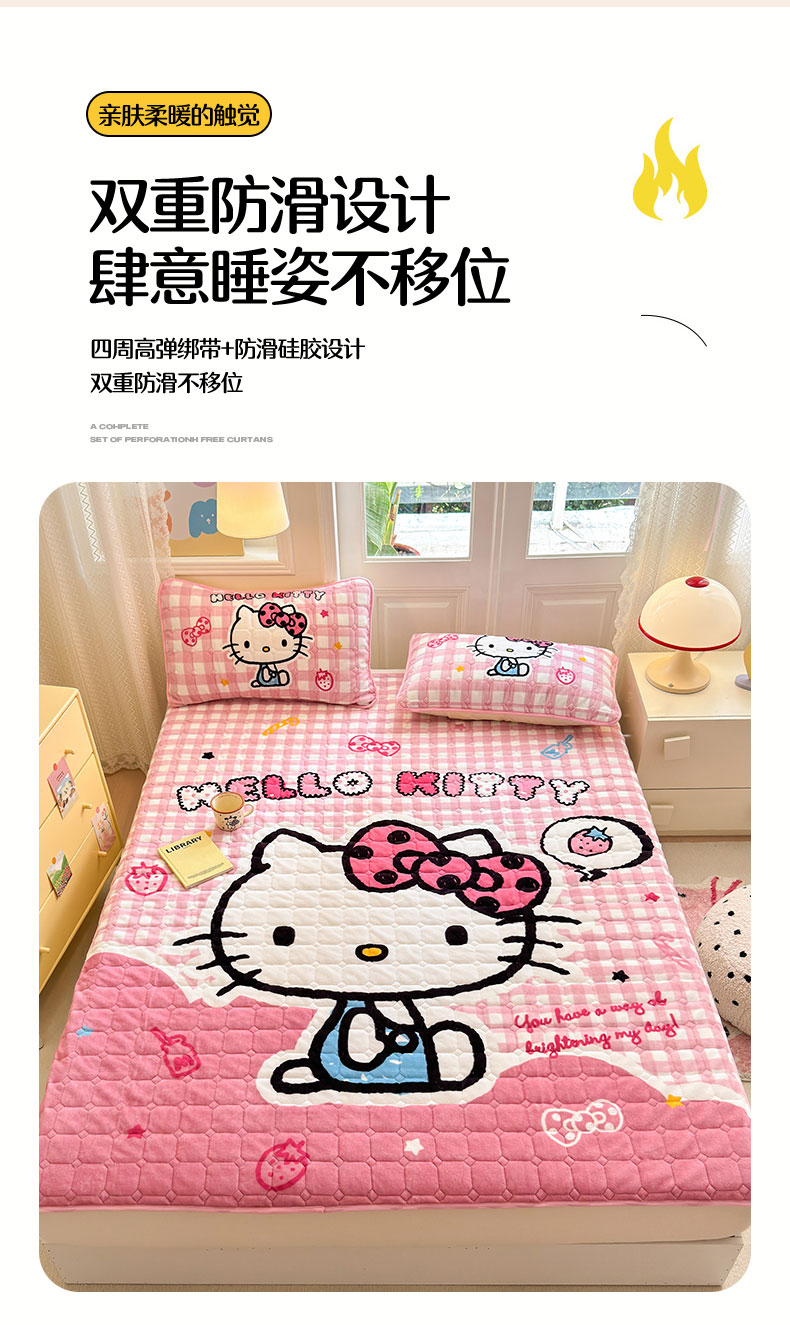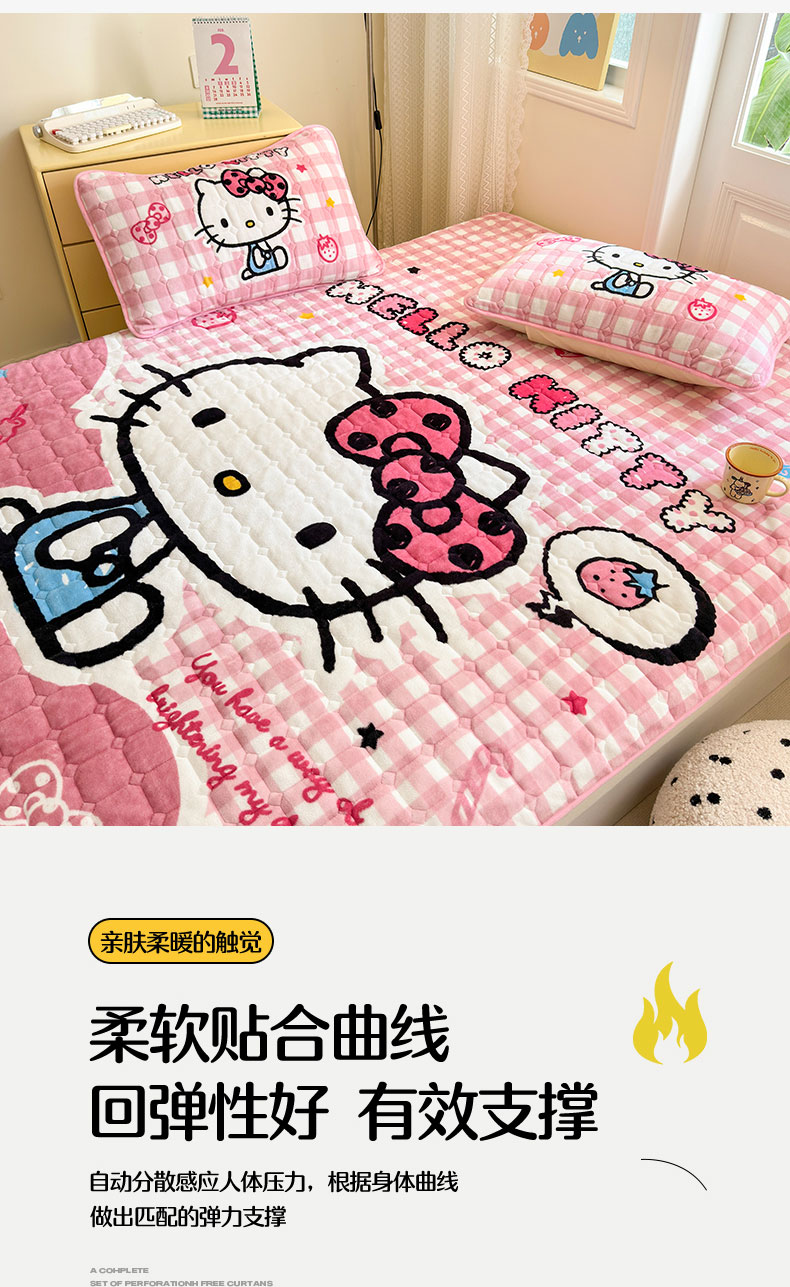 商品名称:(总)希诺家居 2025新款正版授权三丽鸥大版牛奶绒床垫三件套床褥学生宿舍床垫