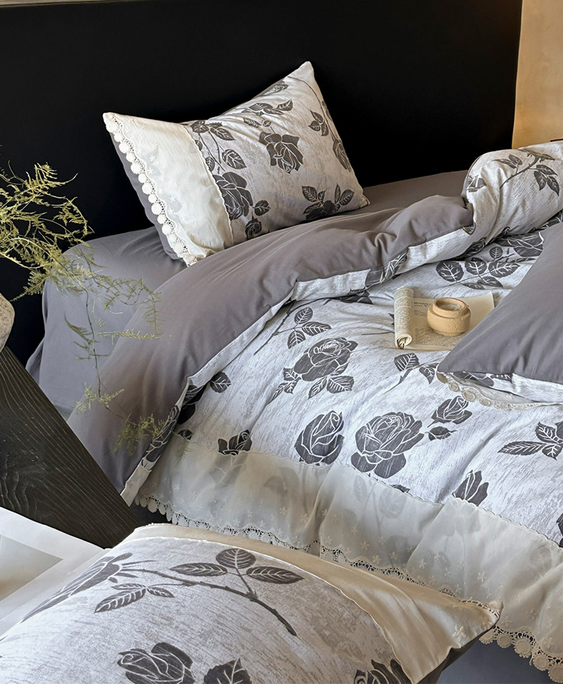 宜代光年 2025新款全棉磨毛花边四件套 岁月留声~灰