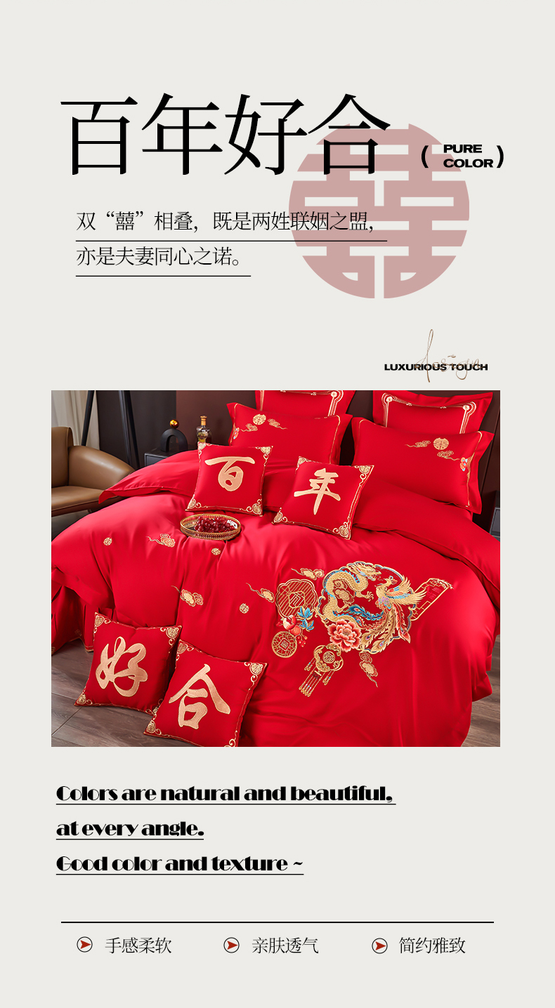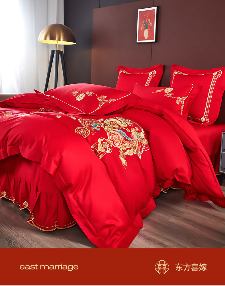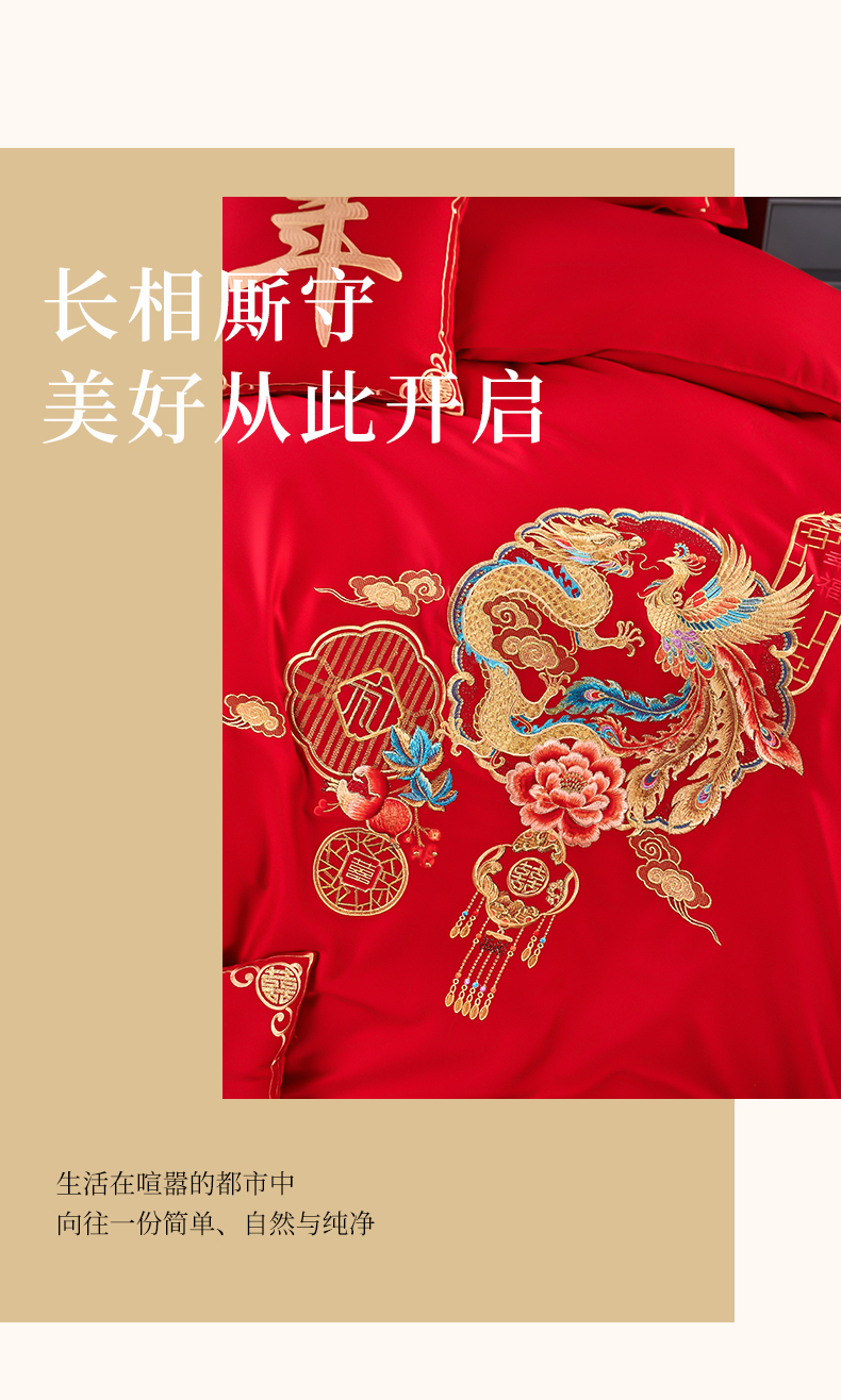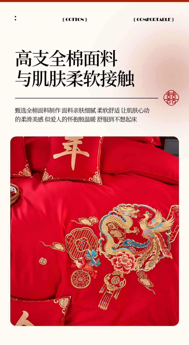 皇潮婚庆馆 2025新款A类布款全棉刺绣婚庆四件套系列 龙悦凤鸣