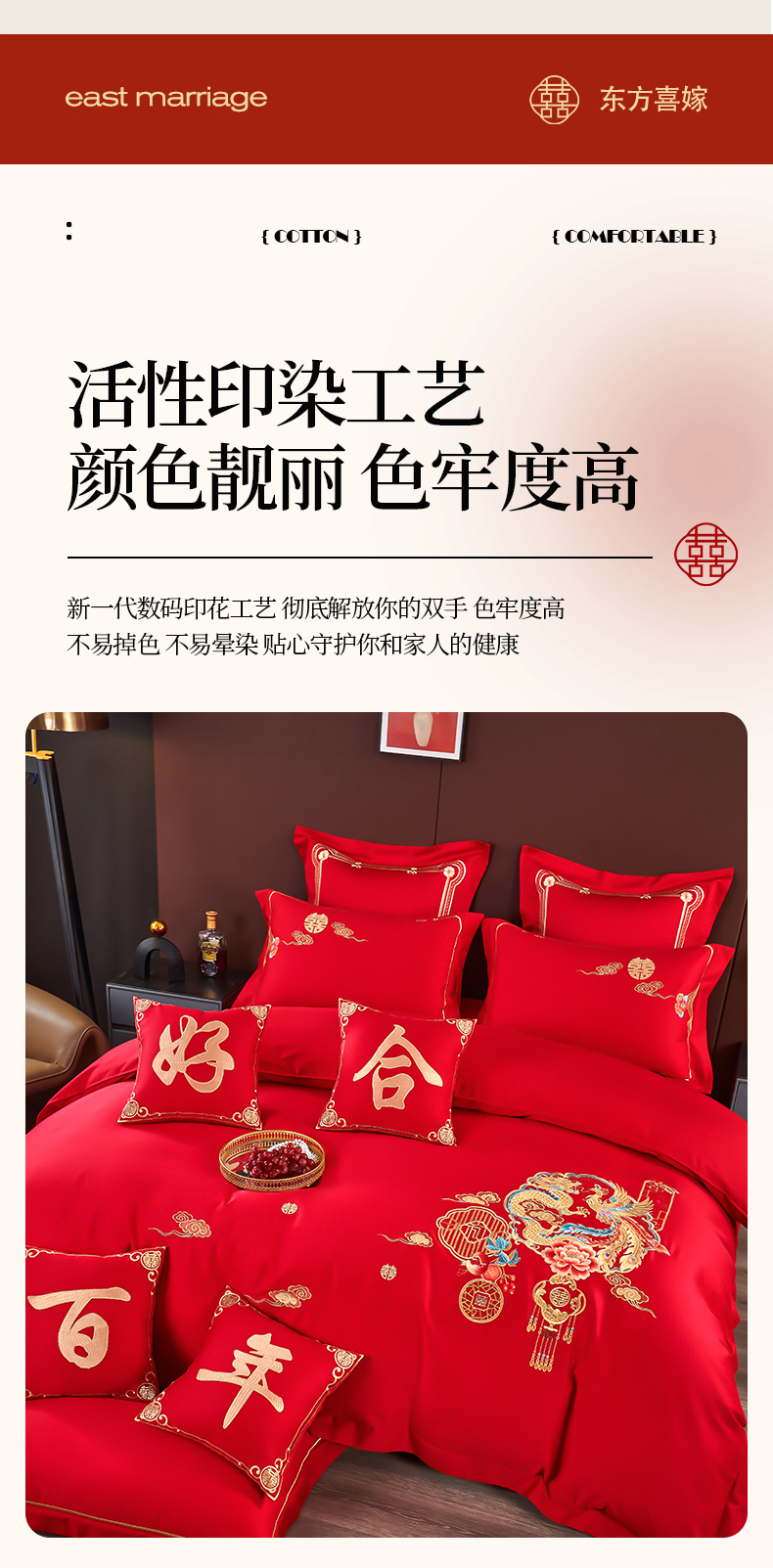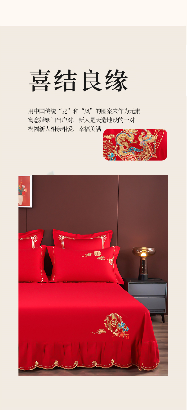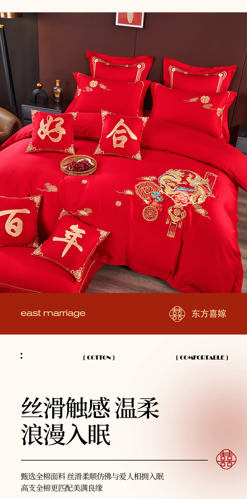 皇潮婚庆馆 2025新款A类布款全棉刺绣婚庆四件套系列 龙悦凤鸣