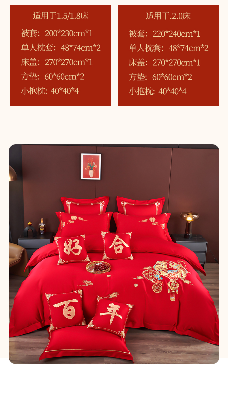 商品名称:皇潮婚庆馆 2025新款A类布款全棉刺绣婚庆四件套系列 龙悦凤鸣
