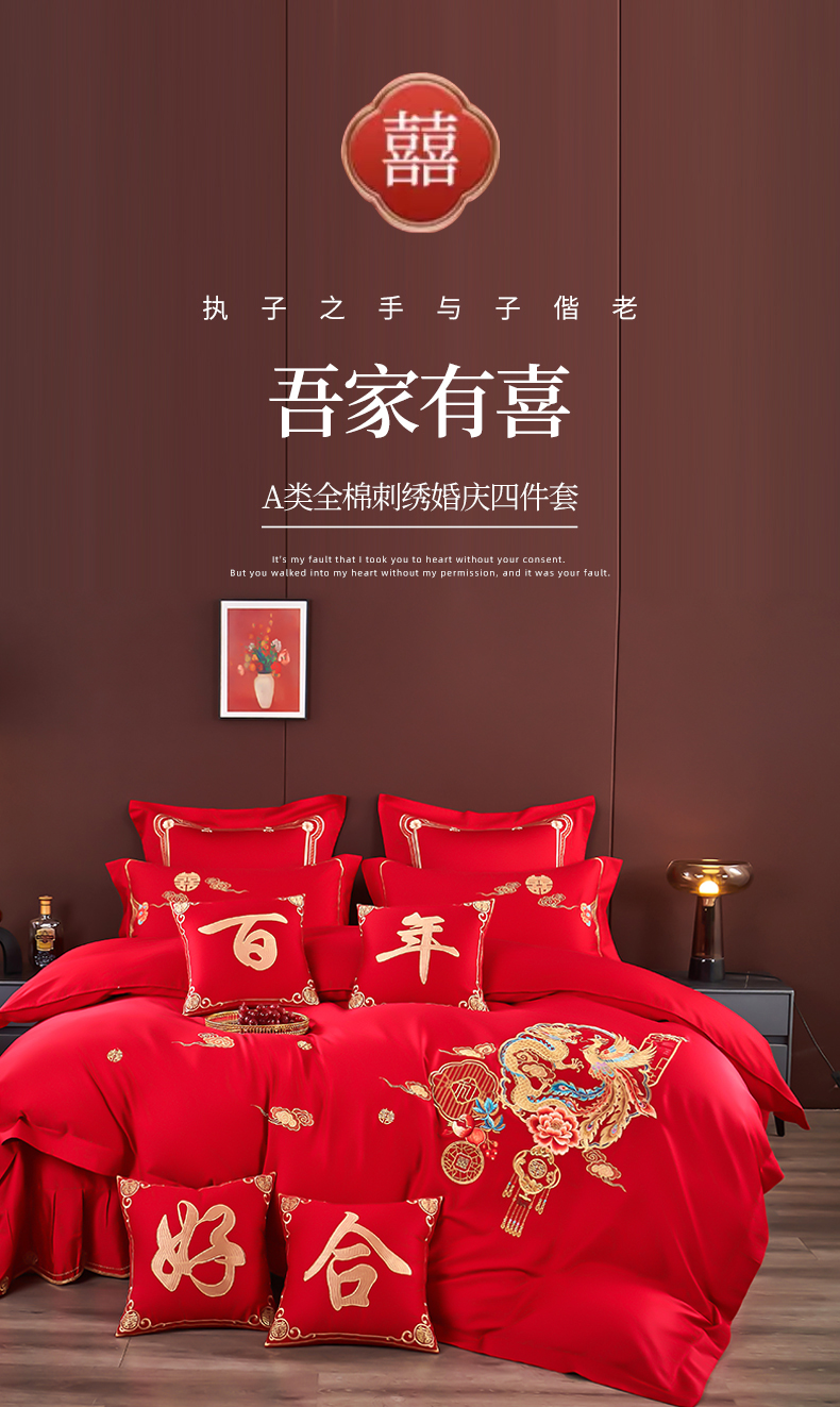 (总)皇潮婚庆馆 2025新款A类布款全棉刺绣婚庆四件套系列,花辰喜盈,百子送喜,龙悦凤鸣,喜事连连,喜迎鸿运