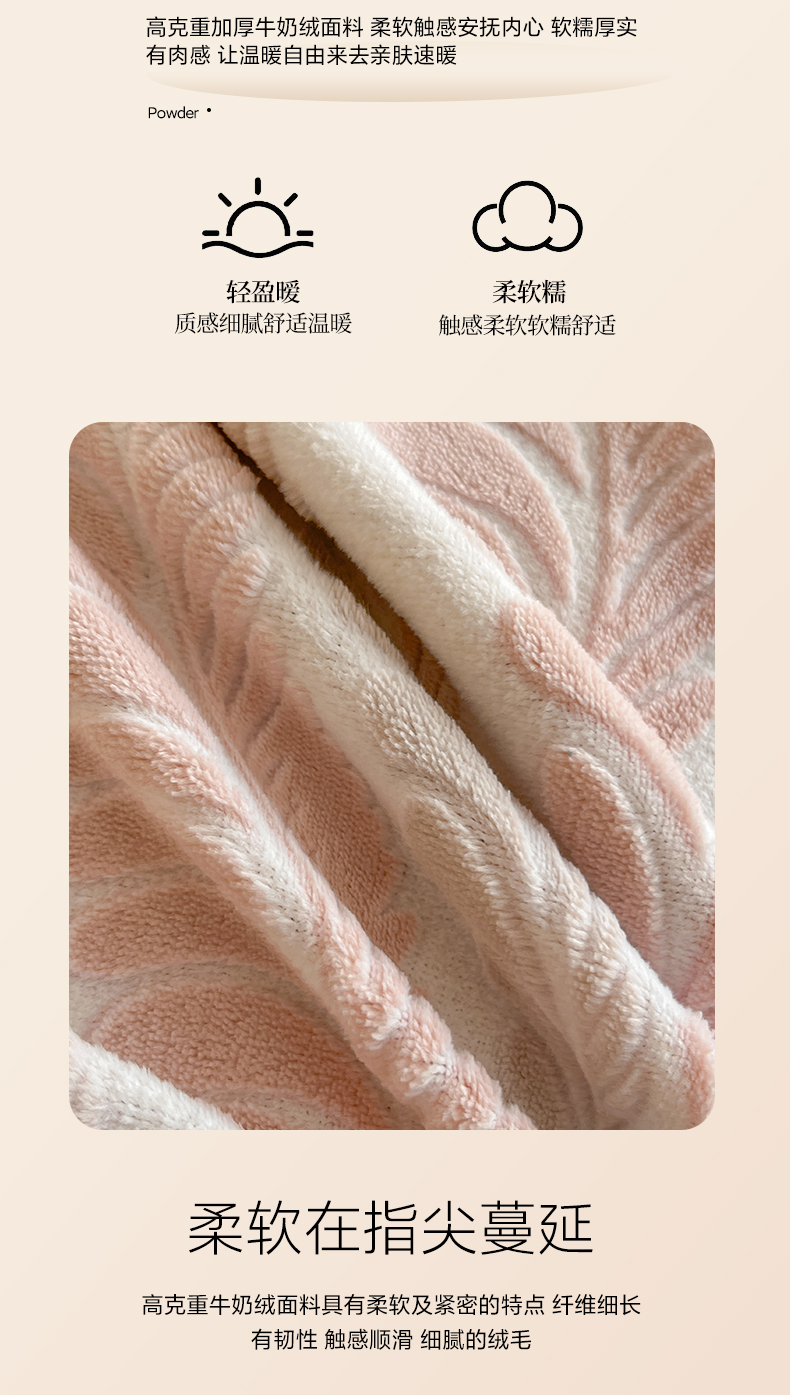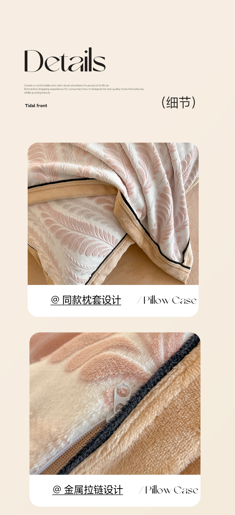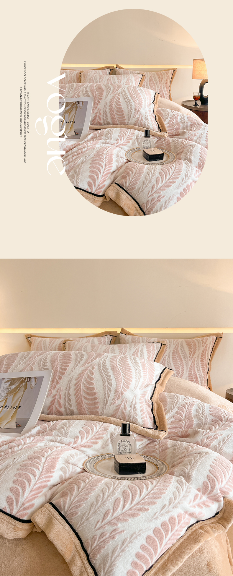 商品名称:畅畅家纺 2025新款冬季压线款雕花牛奶绒四件套 叶恋-浅粉