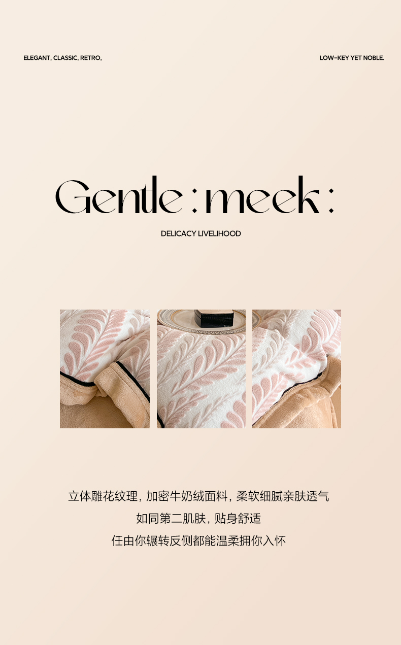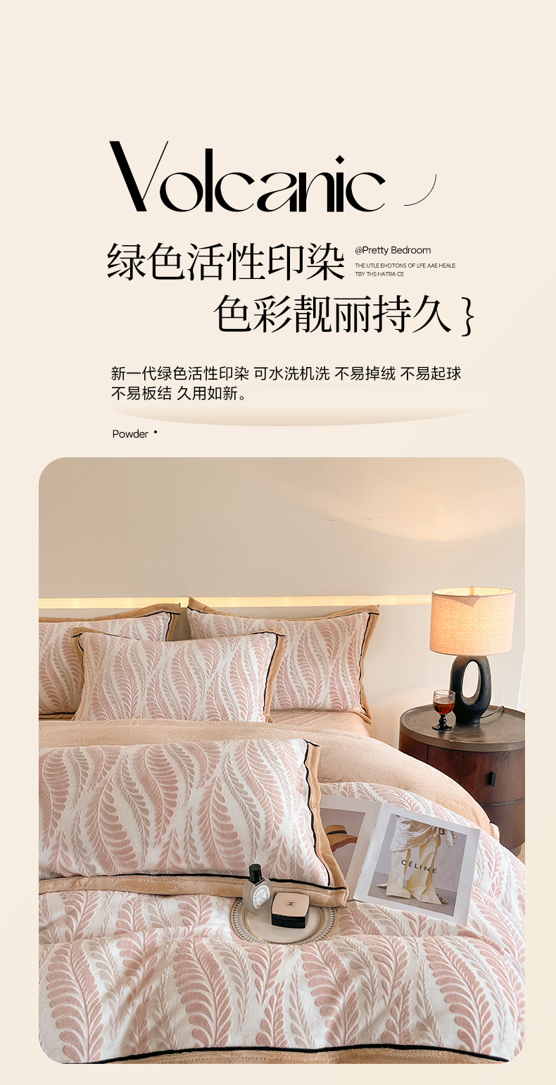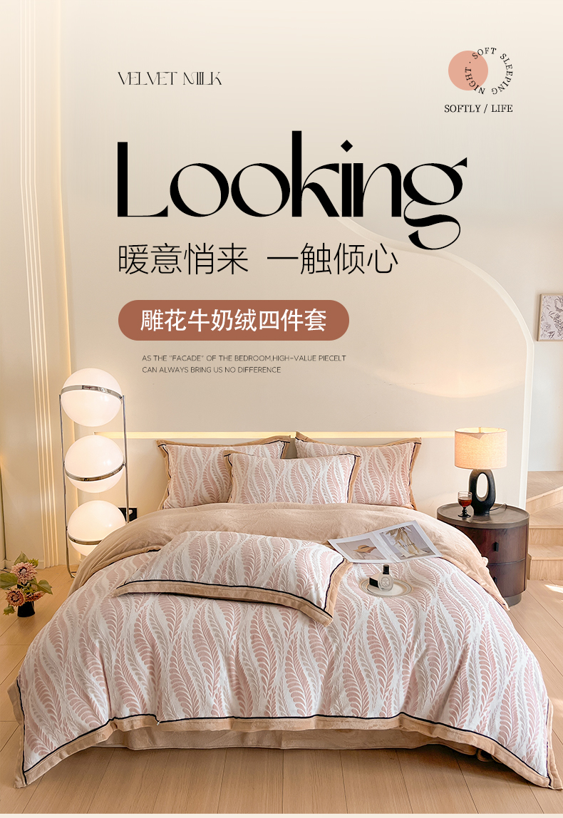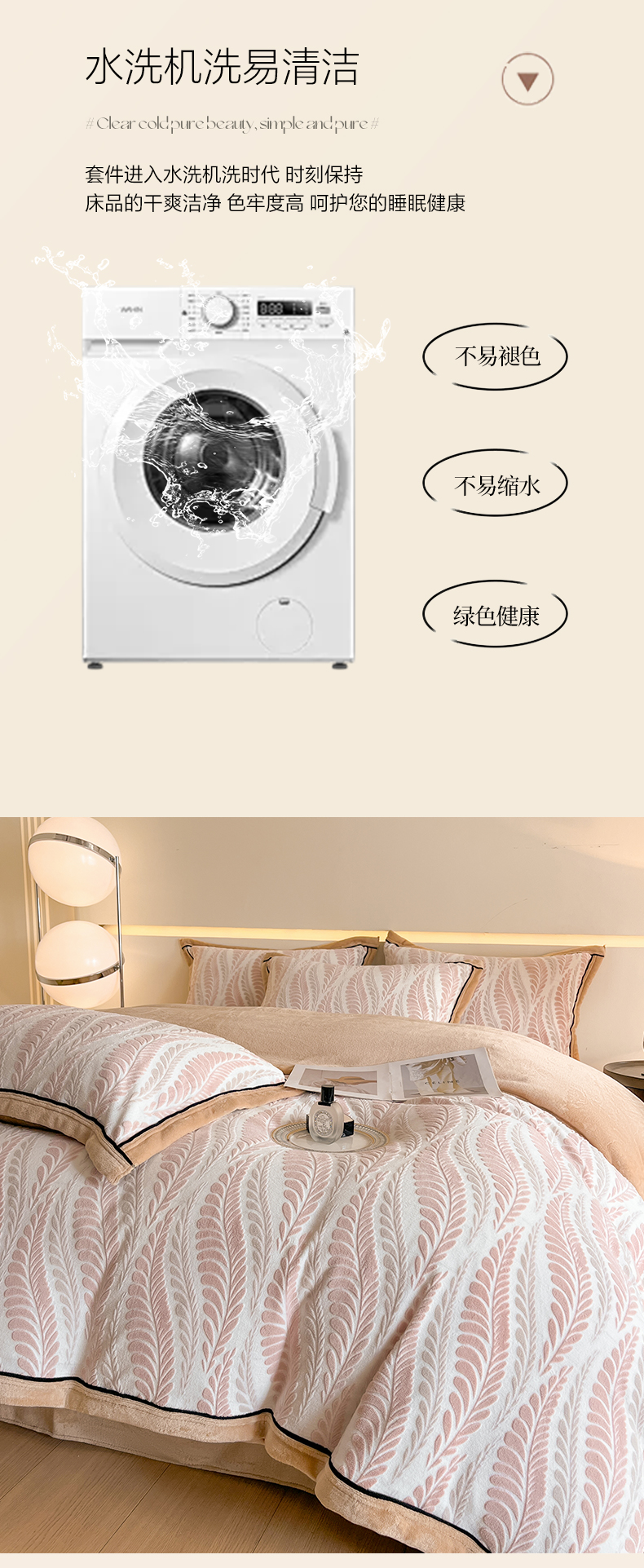 商品名称:畅畅家纺 2025新款冬季压线款雕花牛奶绒四件套 叶恋-浅粉