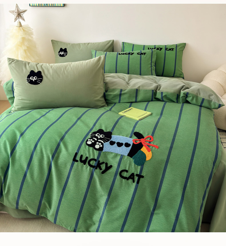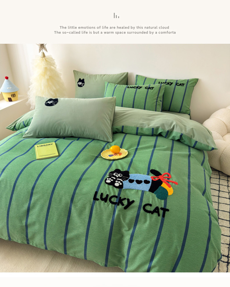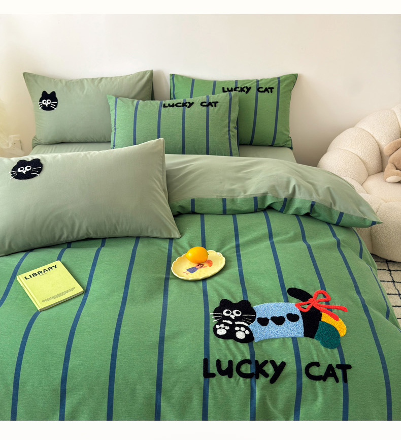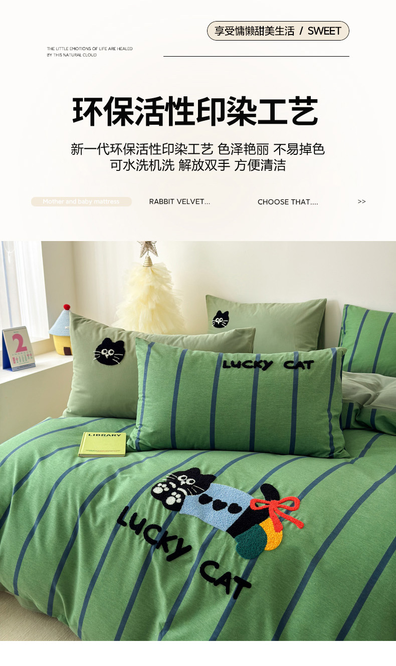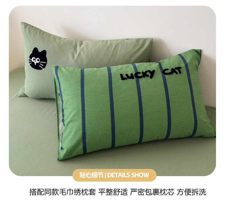 商品名称:如意朵 2025新款全棉加厚磨毛毛巾绣四件套(专版花型) 幸运猫咪