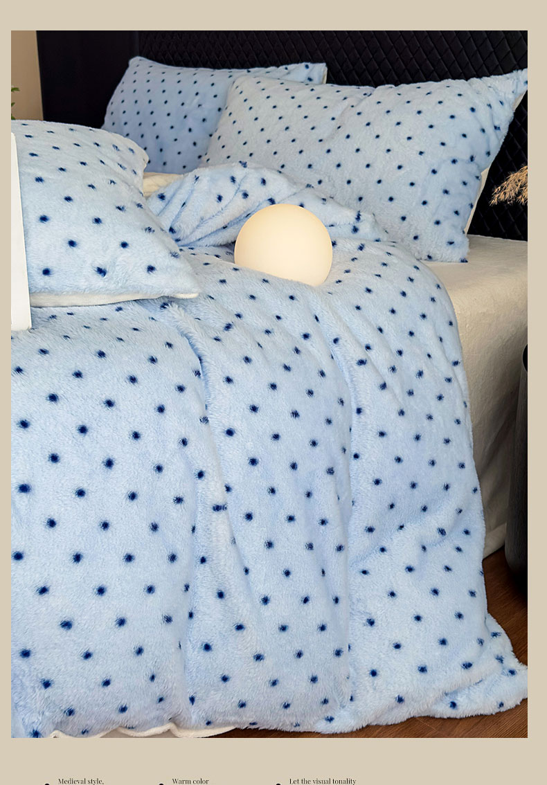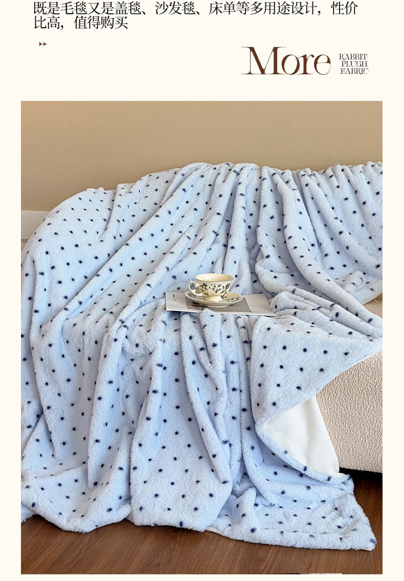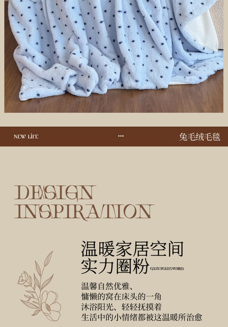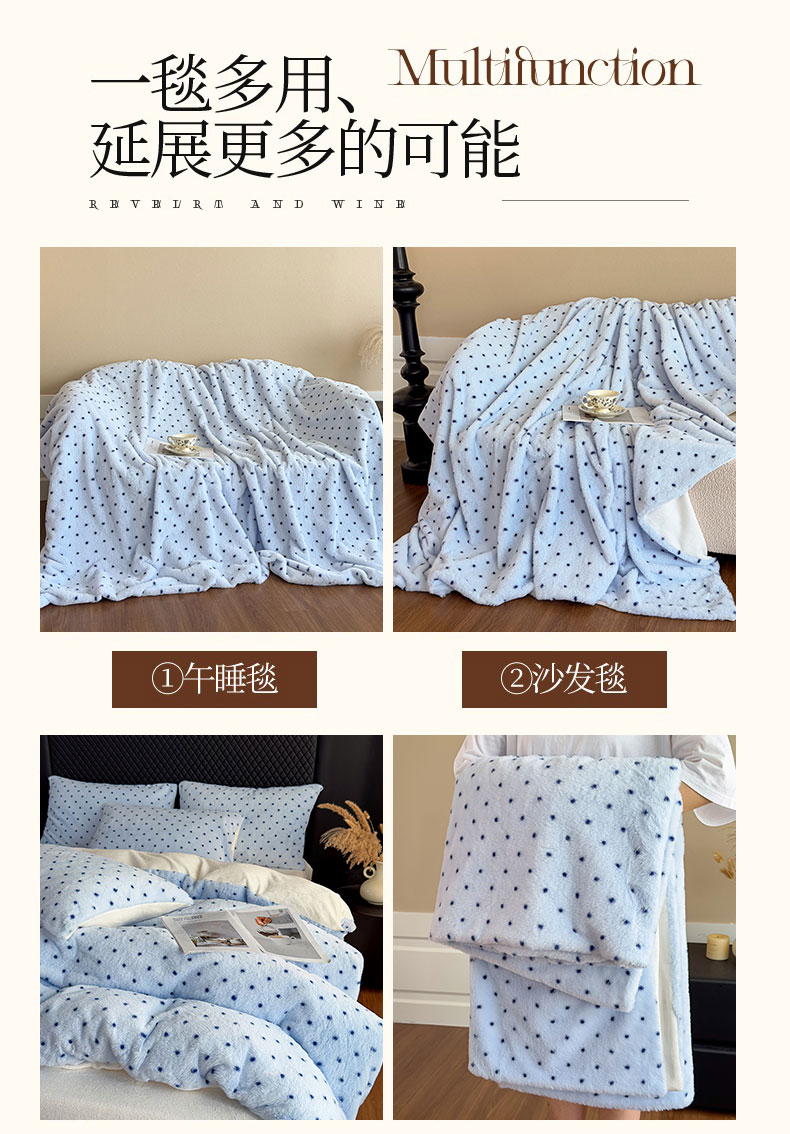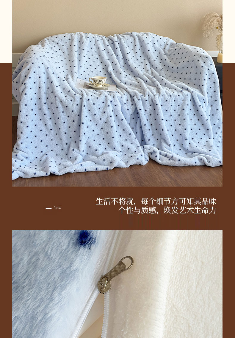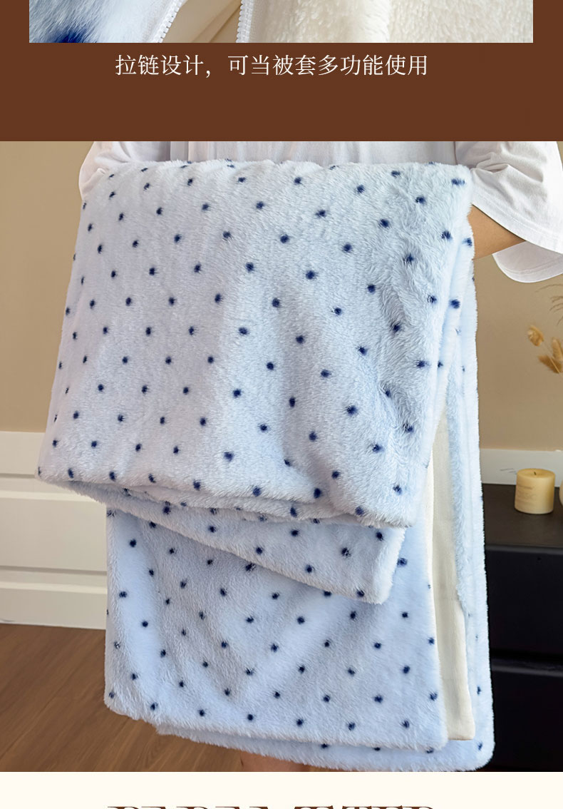 商品名称:璐维斯 2025新款A类兔毛绒双层多功能被套毯带拉链 卡通花卉牛奶绒毛毯秋冬保暖毯子盖毯 浪漫波点-蓝