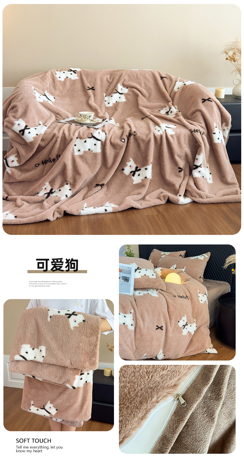 (总)璐维斯 2025 A类舒适兔毛绒印花四件套卡通花卉牛奶绒秋冬保暖床上用品单被套三件套,浪漫波点-粉,繁花-豆沙,繁花-灰,黑白棋盘格,红色棋盘格,蝴蝶结红,可爱狗,腊肠狗,浪漫爱心,浪漫波点-白,浪漫波点-蓝,玫瑰白,时尚豹纹,时尚条纹狗,甜酷猫-红,甜酷猫-咖