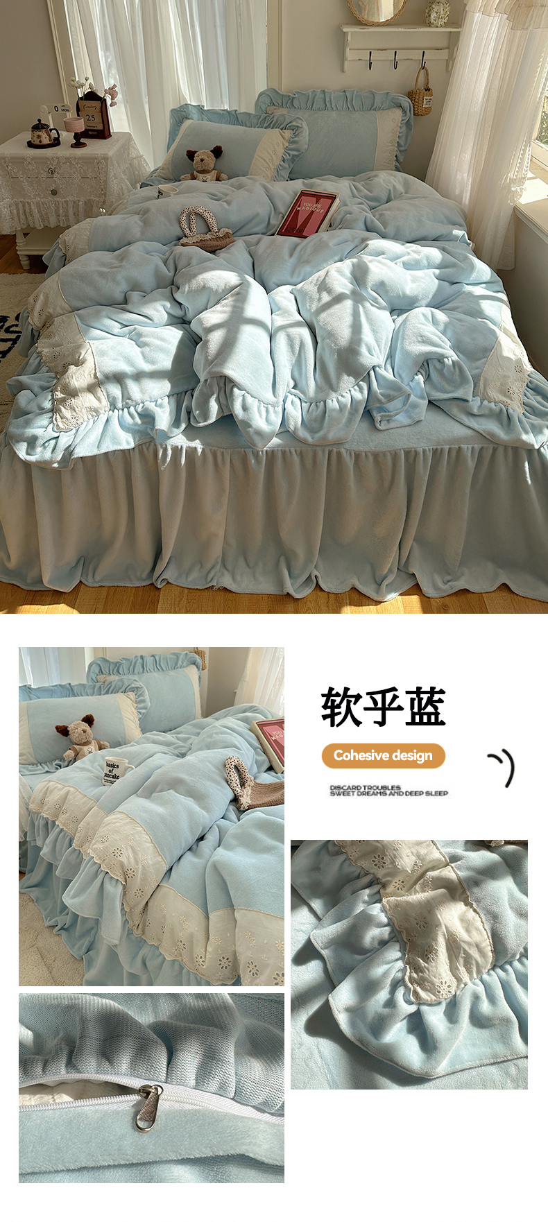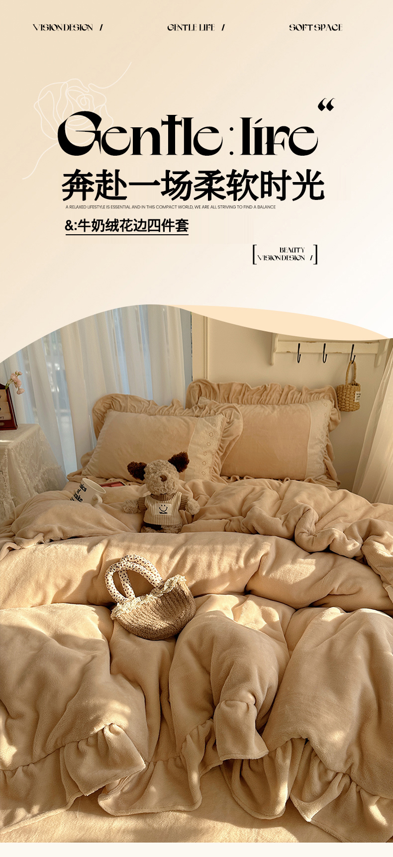 当前位置: 91家纺网 > 商品网购 > 床品套件 > 四件套 > 牛奶绒四件套 > 轻奢坊 2025新款牛奶绒纯色全棉蕾丝大花边四件套-软乎系列 软乎粉