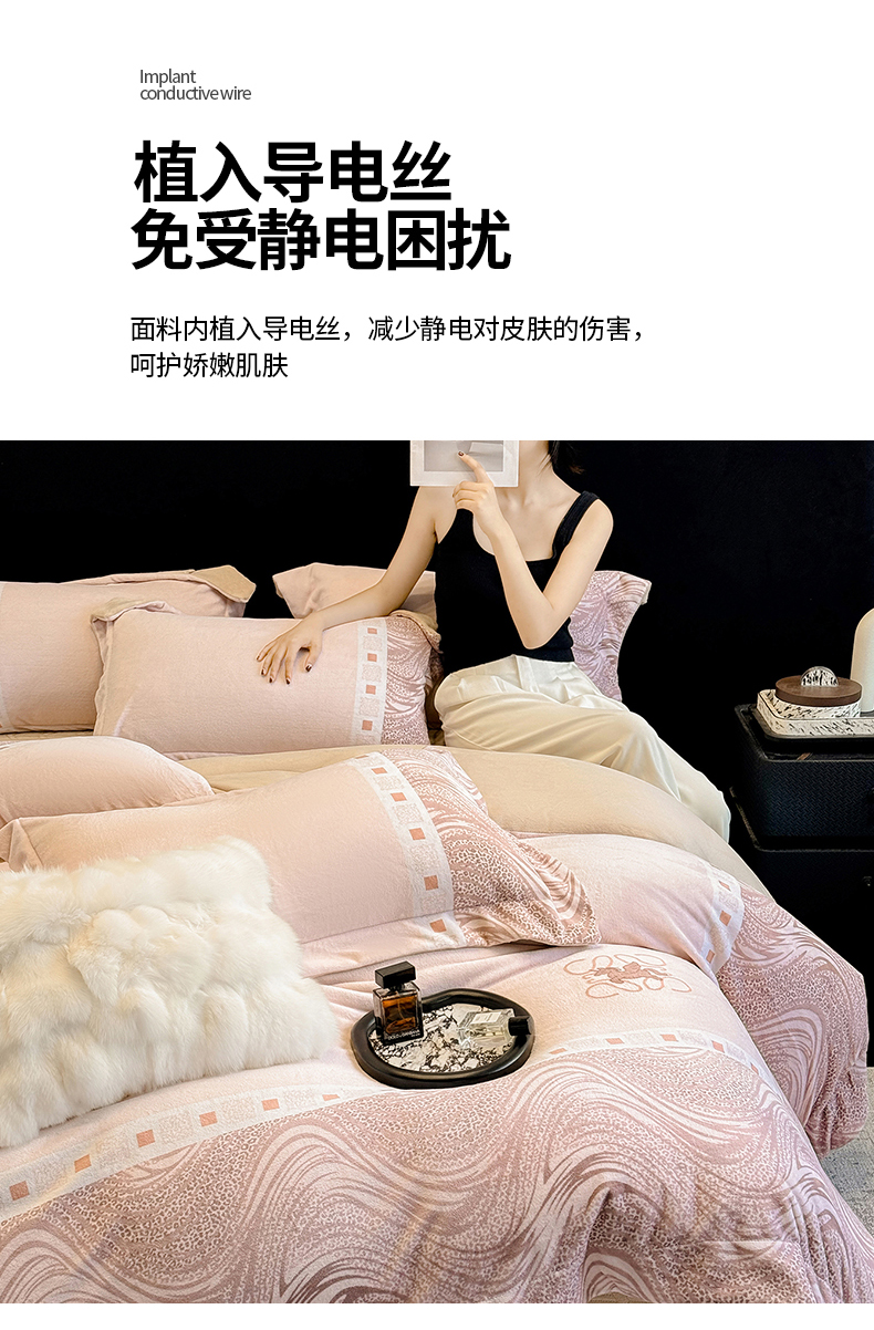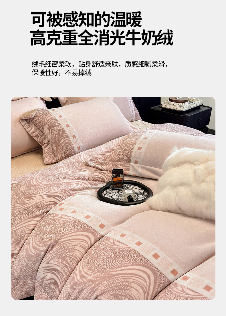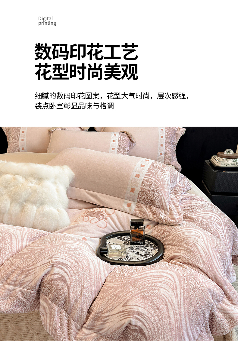 商品名称:新方向 2025年新款全消光A类数码印花牛奶绒四件套-贝斯 贝斯-香槟