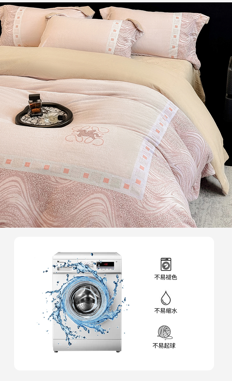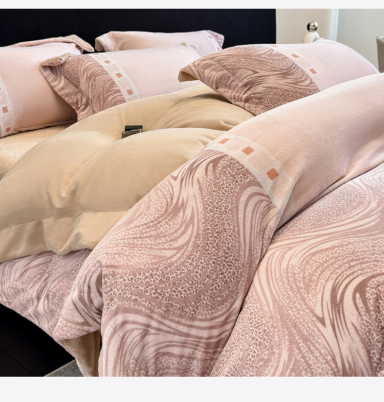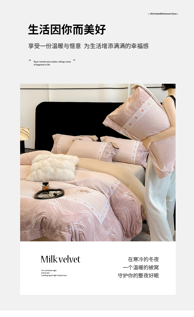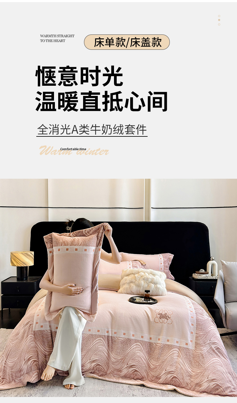 商品名称:新方向 2025年新款全消光A类数码印花牛奶绒四件套-贝斯 贝斯-香槟