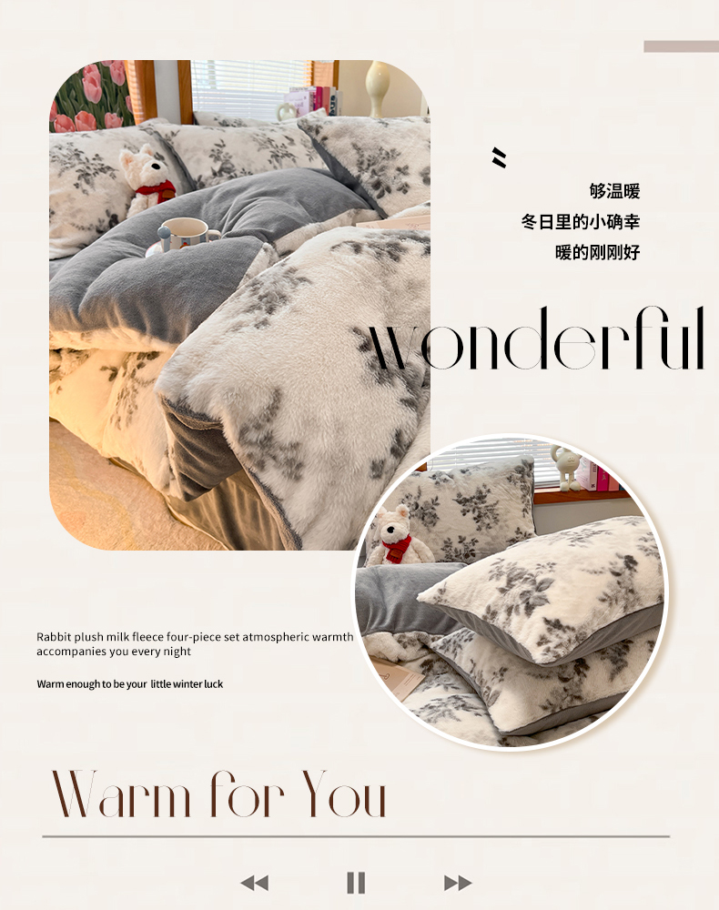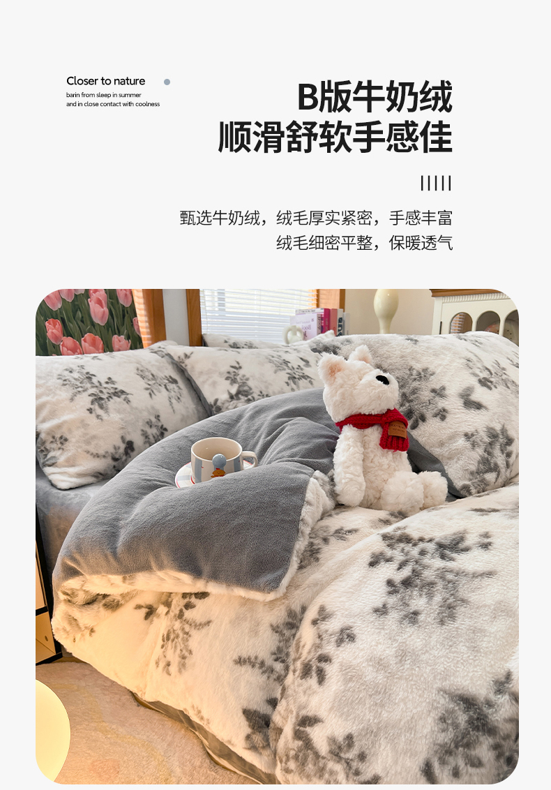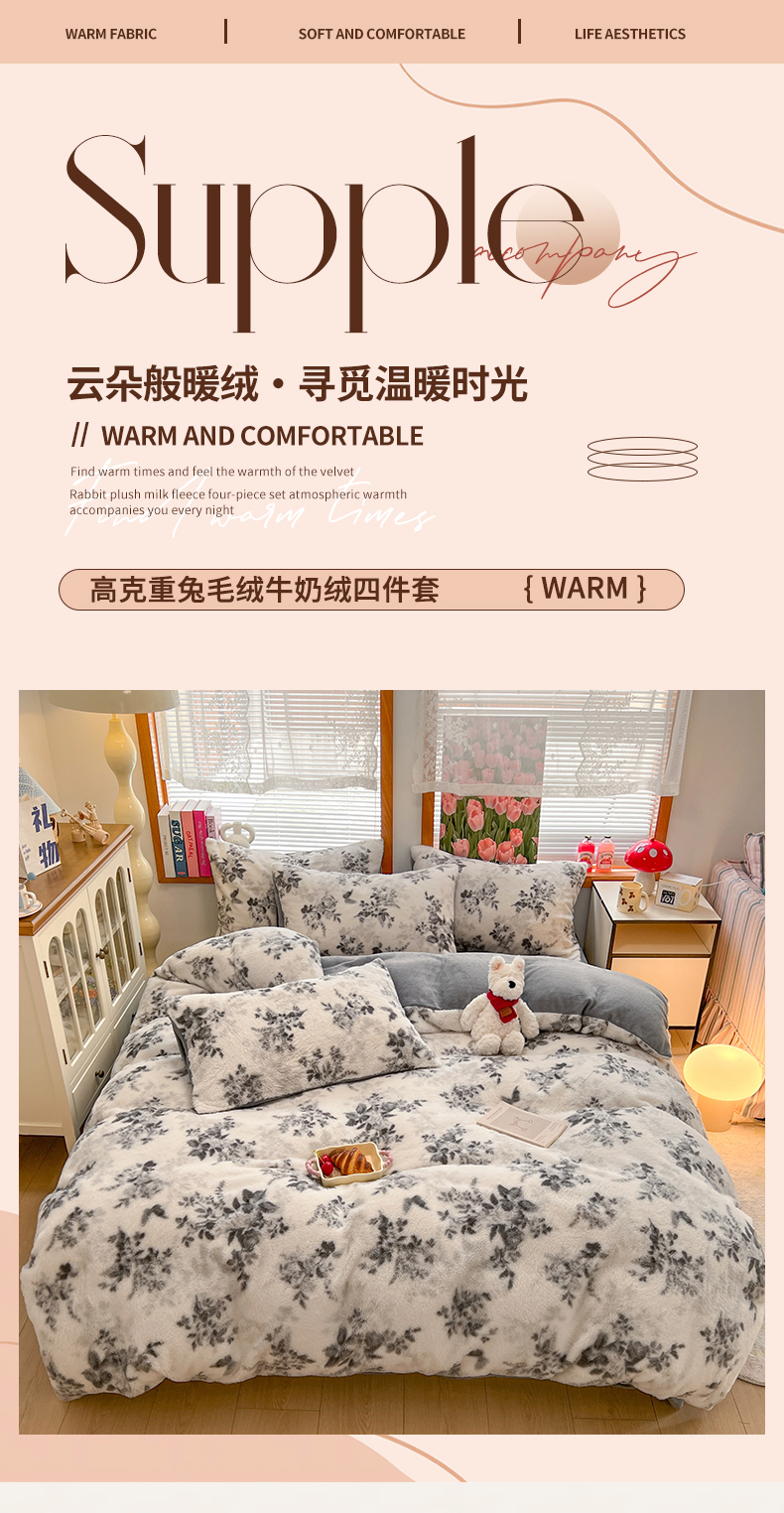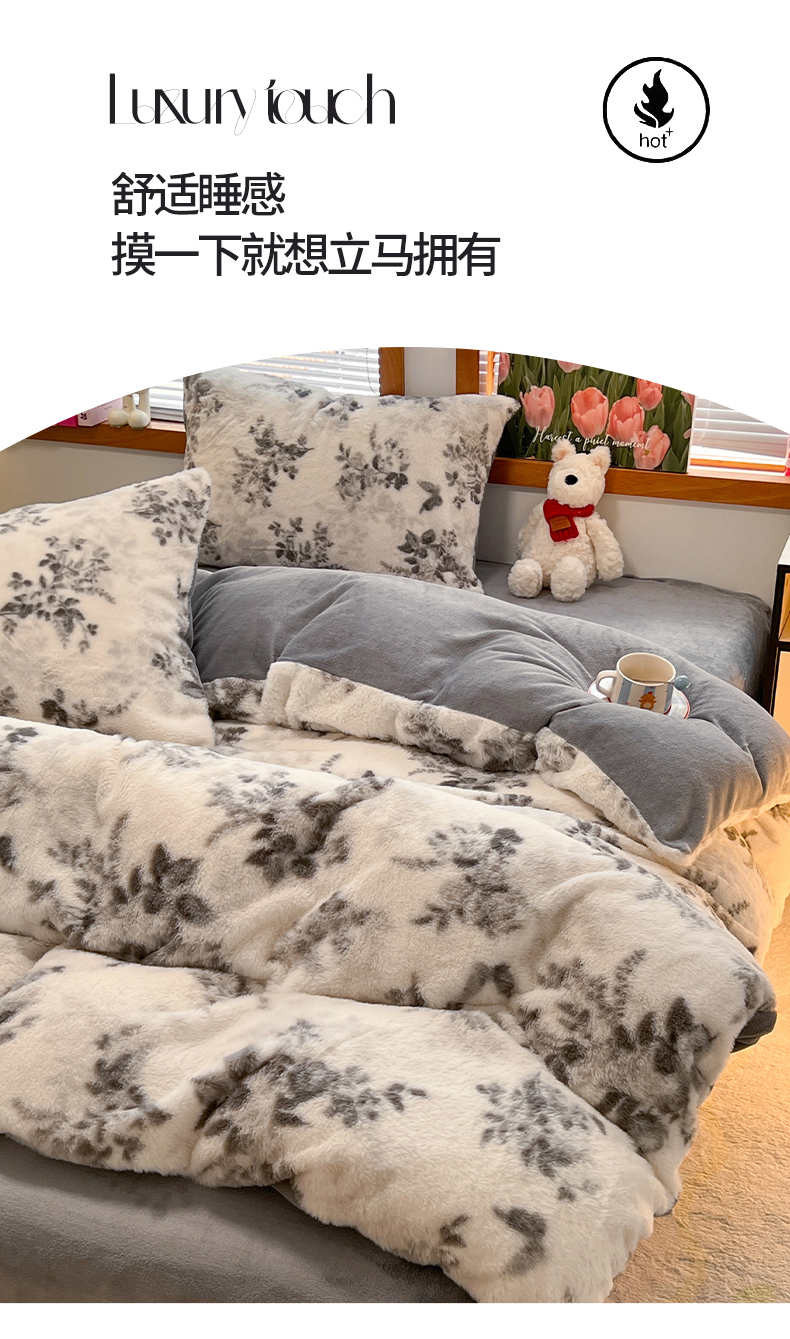当前位置: 91家纺网 > 商品网购 > 床品套件 > 四件套 > 其它四件套 > 妖妖家纺 2025新款加厚印花兔毛绒保暖四件套 花谷