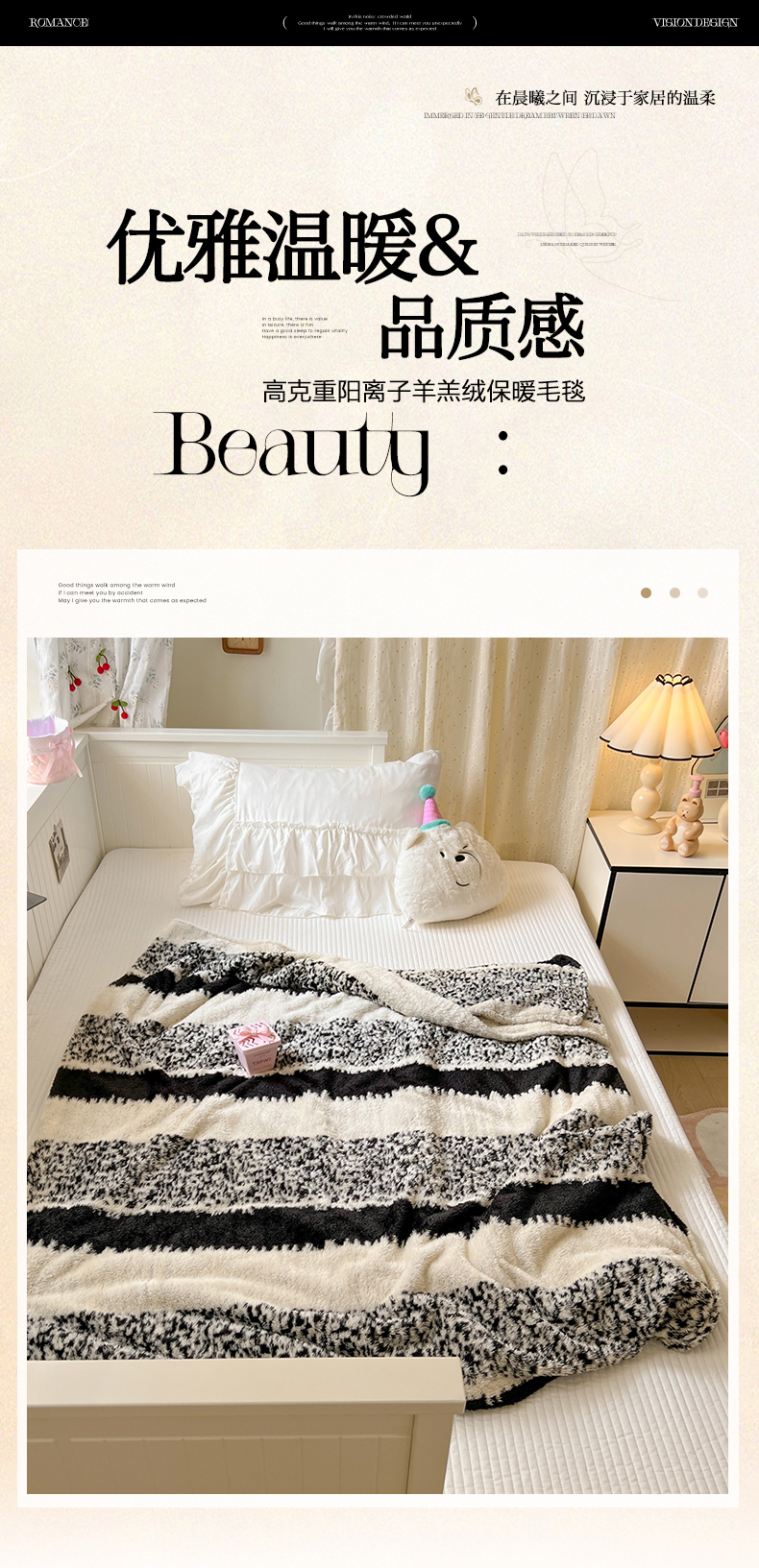 妖妖家纺 2025新款高克重阳离子羊羔绒保暖双面毛毯 素纹吟风
