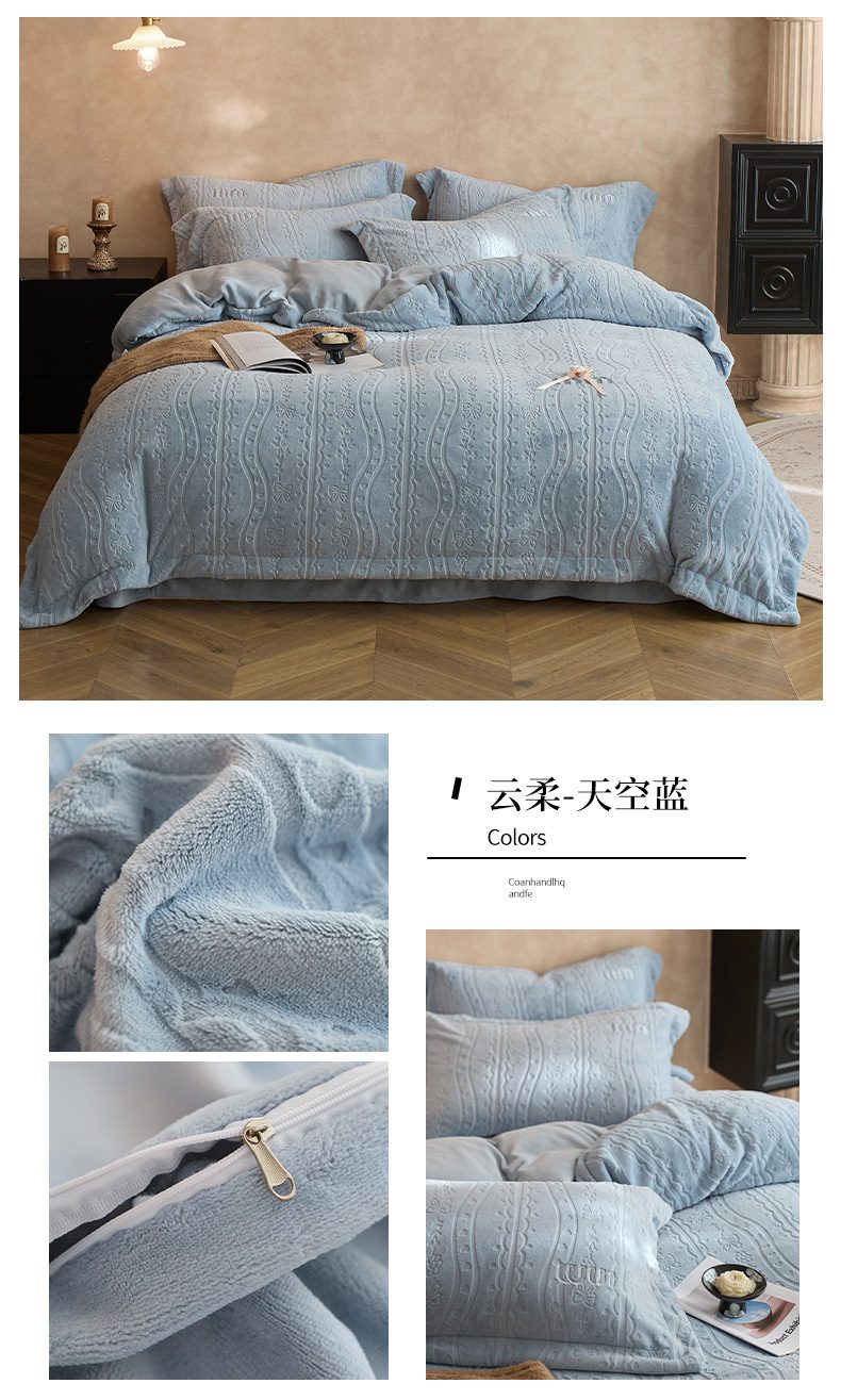 (总)卡初 2022新款高克重牛奶绒浪花绒四件套,爱丽丝-粉色,爱丽丝-灰色,爱丽丝-桔色,爱丽丝-蓝色,爱丽丝-米色