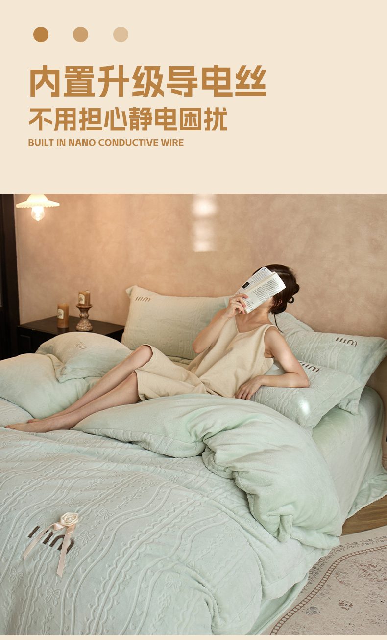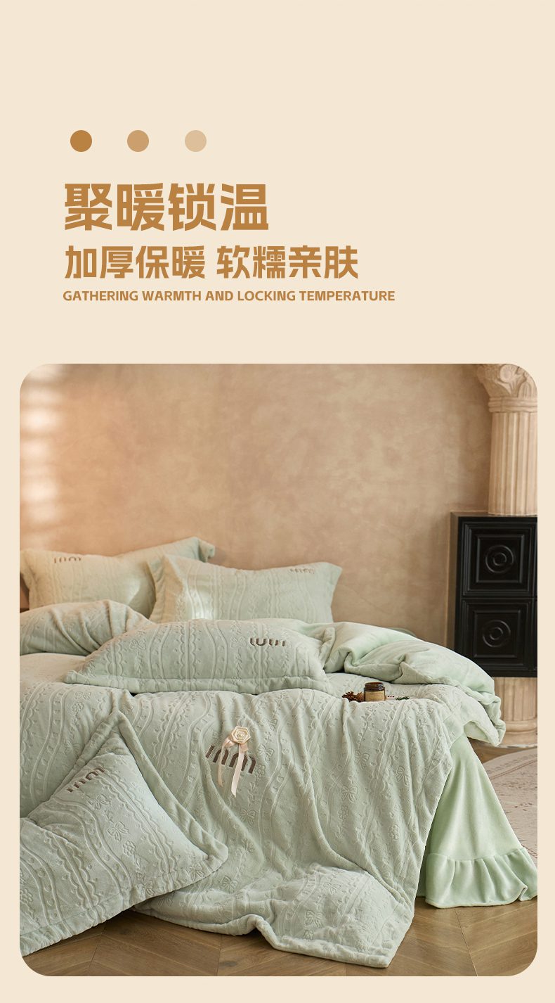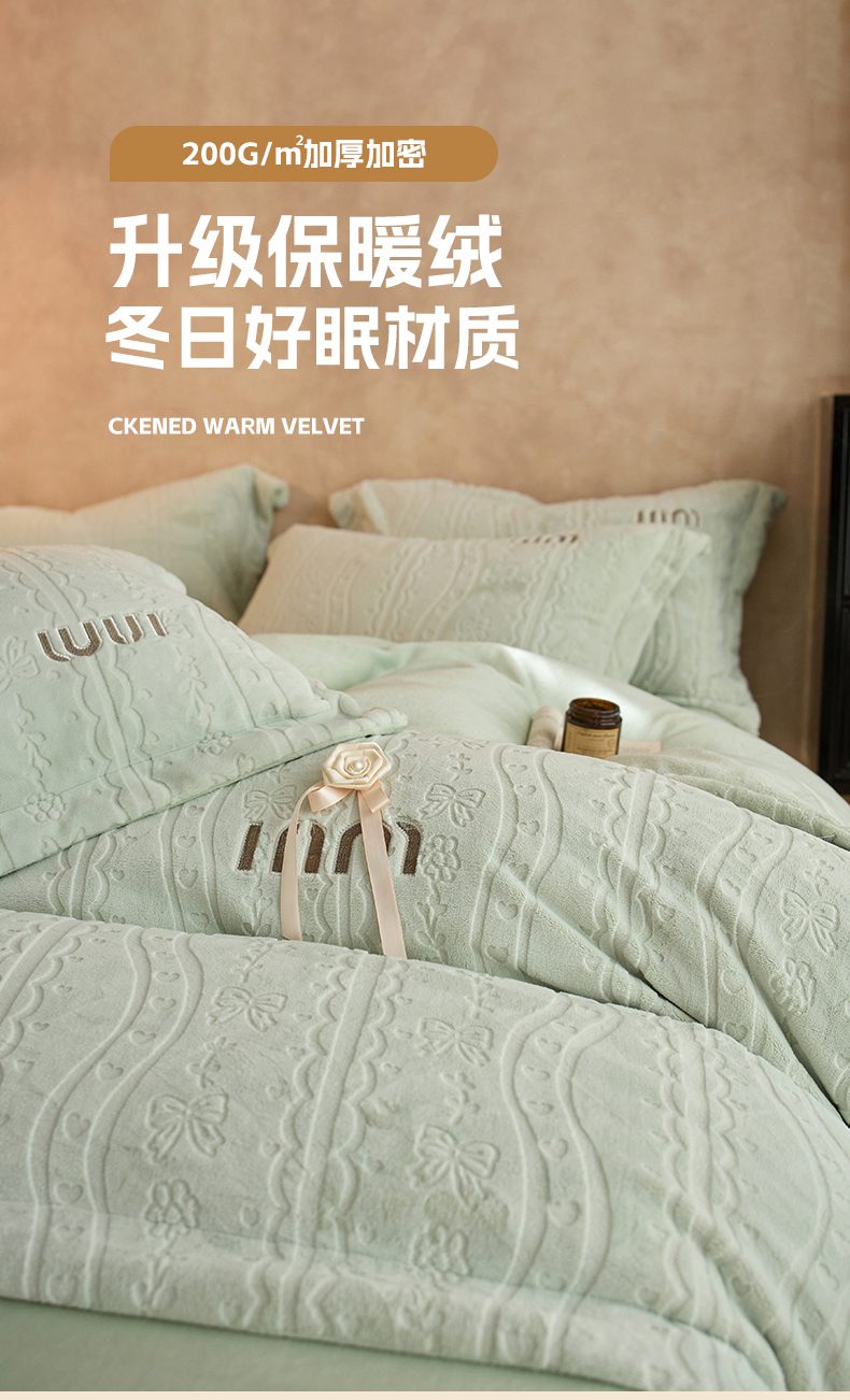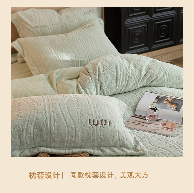 (总)卡初家居(原微来) 2025新款秋冬亲肤牛奶绒绣花四件套-多喜系列,多喜-豆沙,多喜-果绿,多喜-米黄,多喜-浅紫,多喜-桃粉,多喜-天蓝