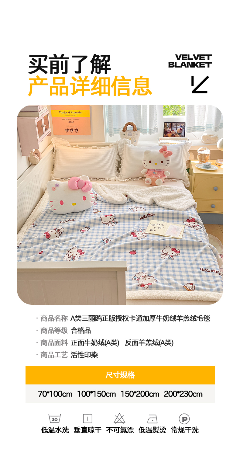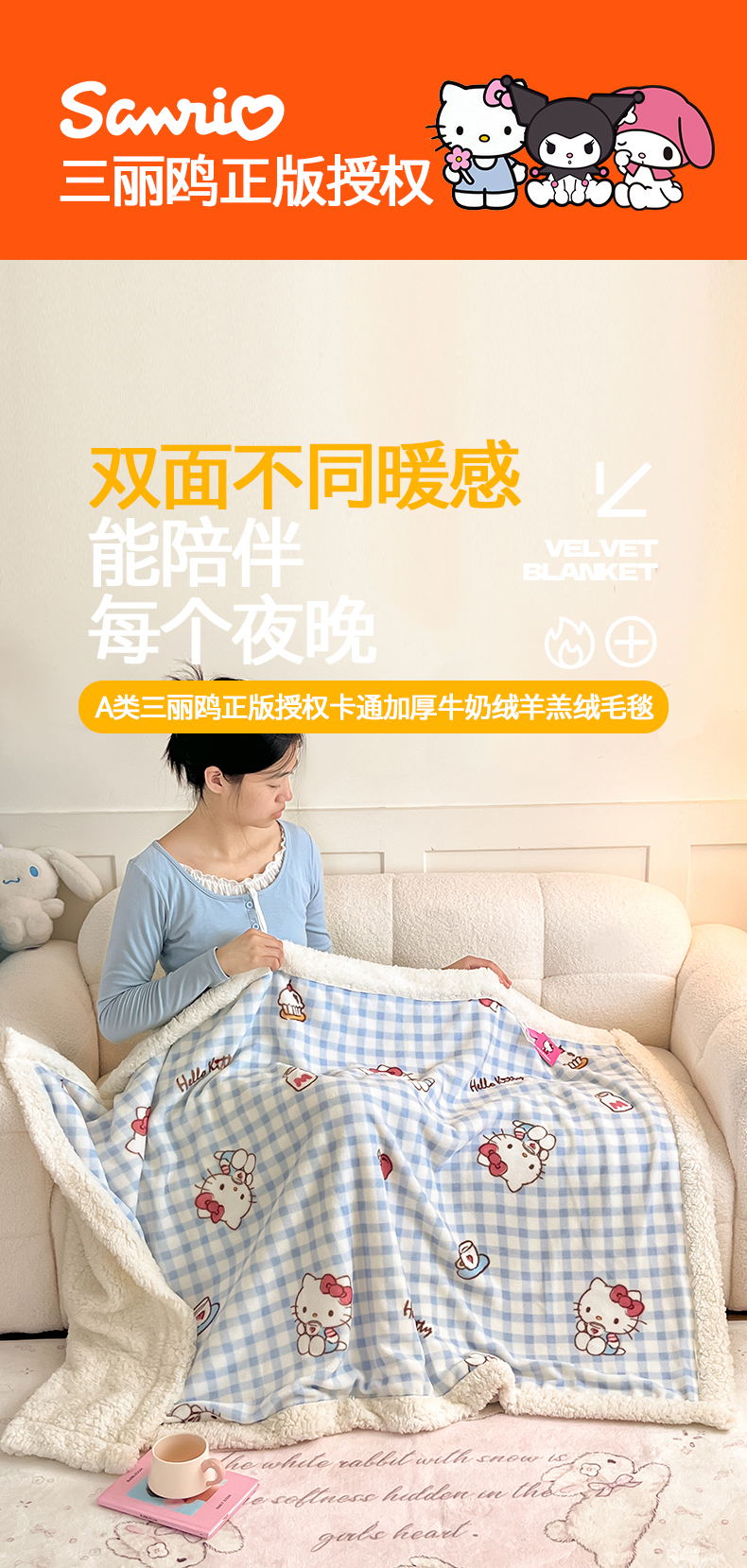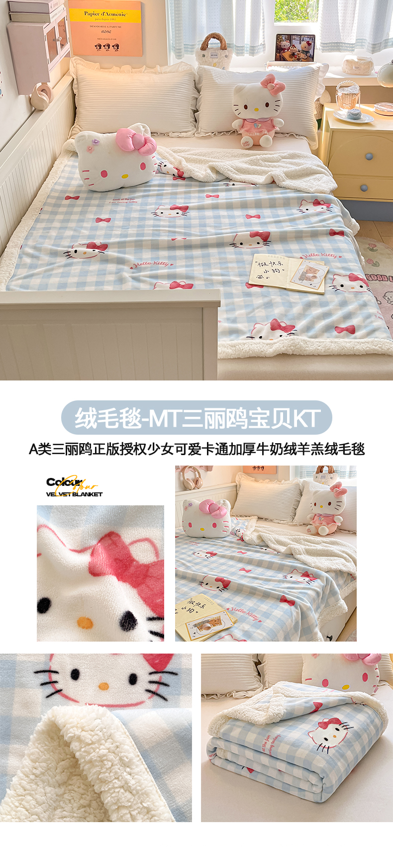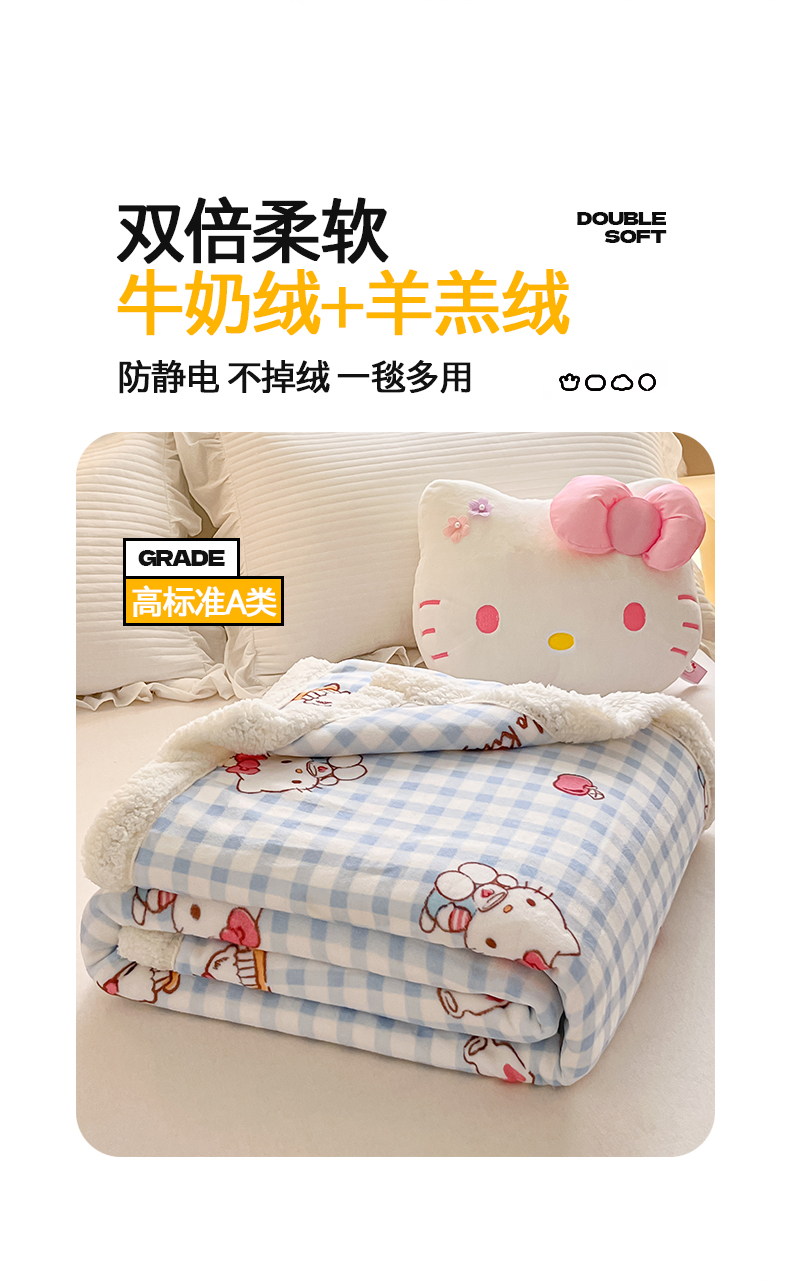 当前位置: 91家纺网 > 商品网购 > 床品套件 > 四件套 > 葡萄家 2025新款A类三丽鸥正版授权少女可爱卡通加厚牛奶绒羊羔绒多功能四季毛毯毯子 绒毛毯-MT三丽鸥蓝格牛奶KT