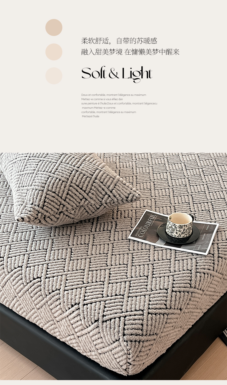(总)欧邦 2025新款提花暖阳绒单床笠,苍穹蓝,初雪白,海棠粉,慕斯灰,青瓷绿,檀木咖