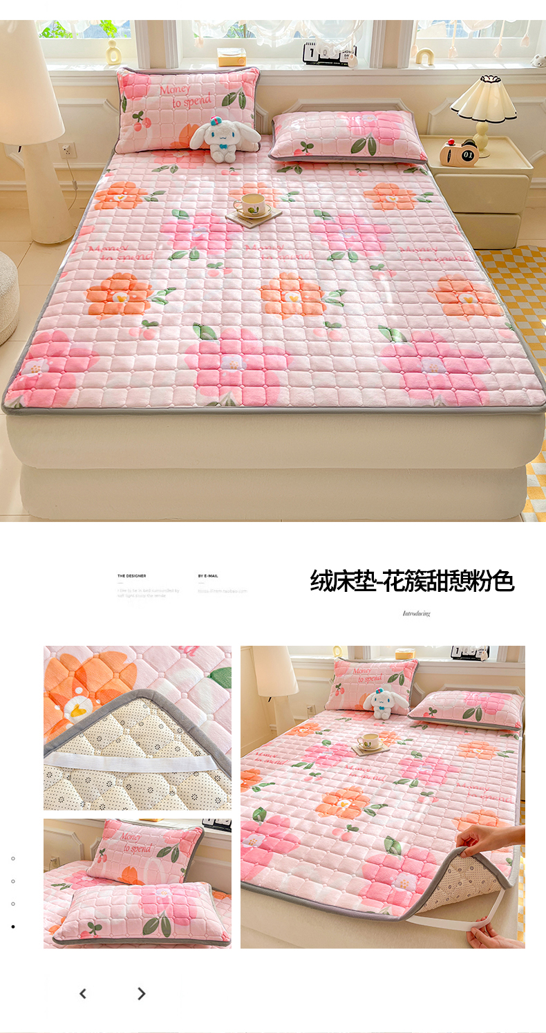 当前位置: 91家纺网 > 商品网购 > 床垫/床褥 > 普通床垫 > 小叮当家纺仓储工厂店 2025新款牛奶绒夹棉印花床垫床护垫大床图 绒床垫-花暖香风绿色
