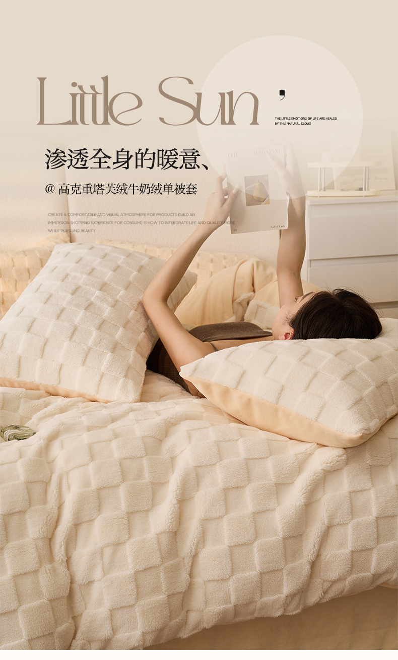 商品名称:(总)晨曦家纺 2025新款加厚高克重230克塔芙绒牛奶绒单被套-初暖系列