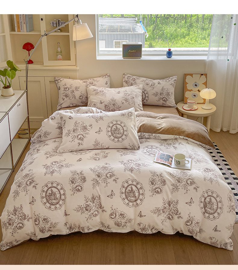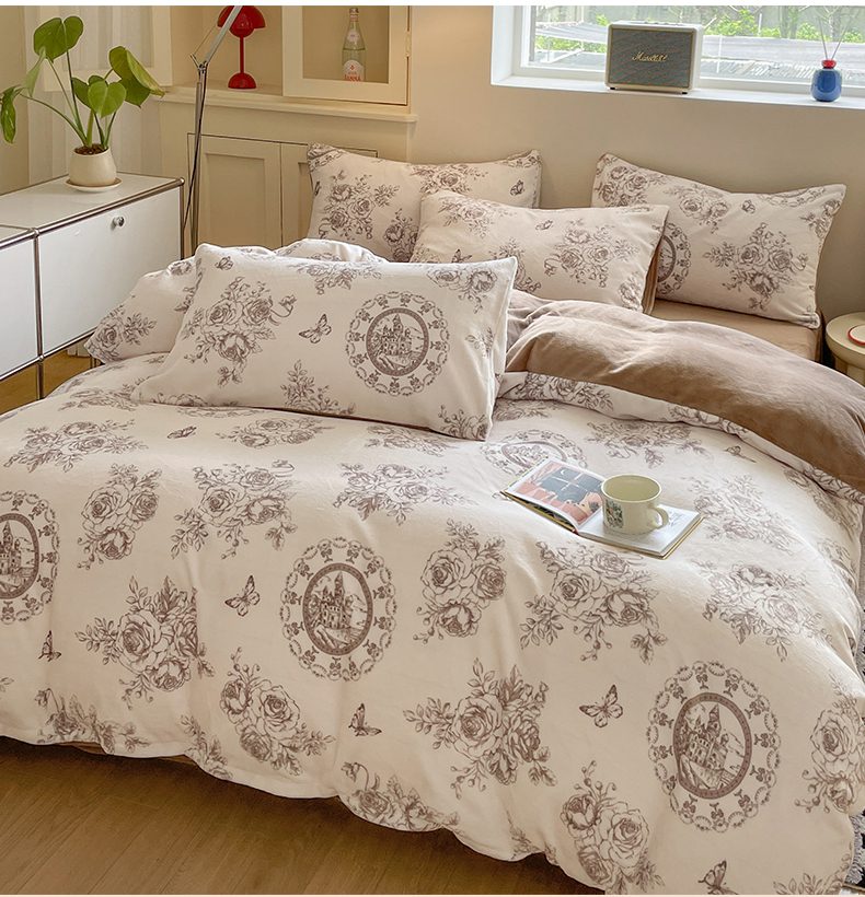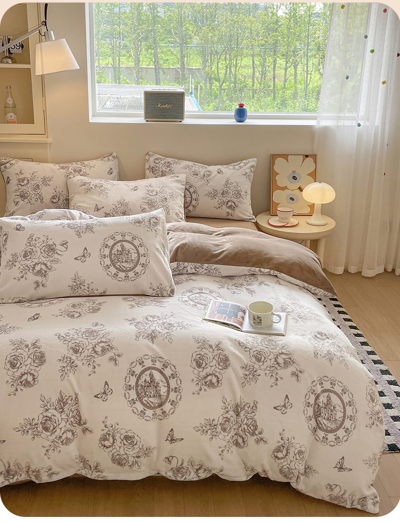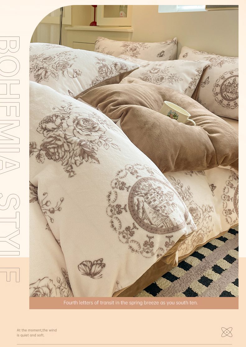 如约 2025新款印花牛奶绒四件套 萱草梦-咖