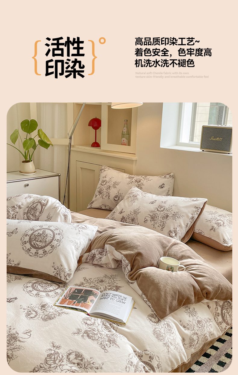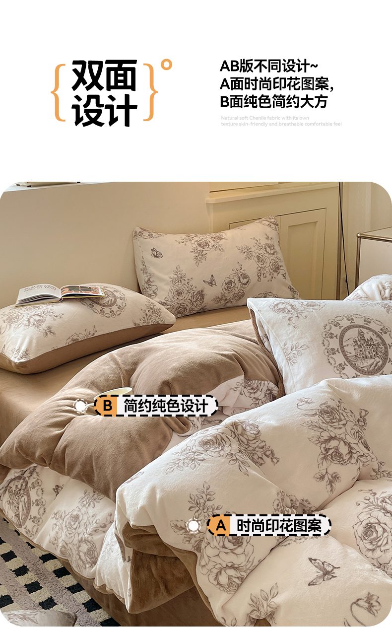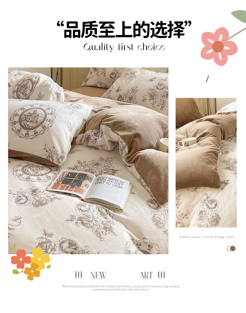 商品名称:如约 2025新款印花牛奶绒四件套 萱草梦-咖