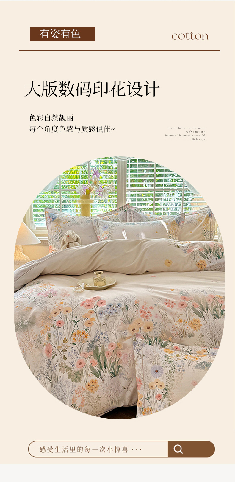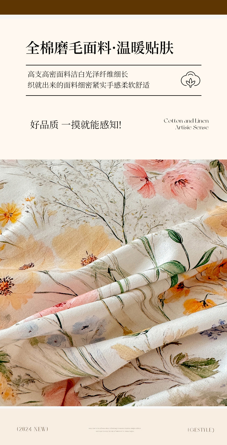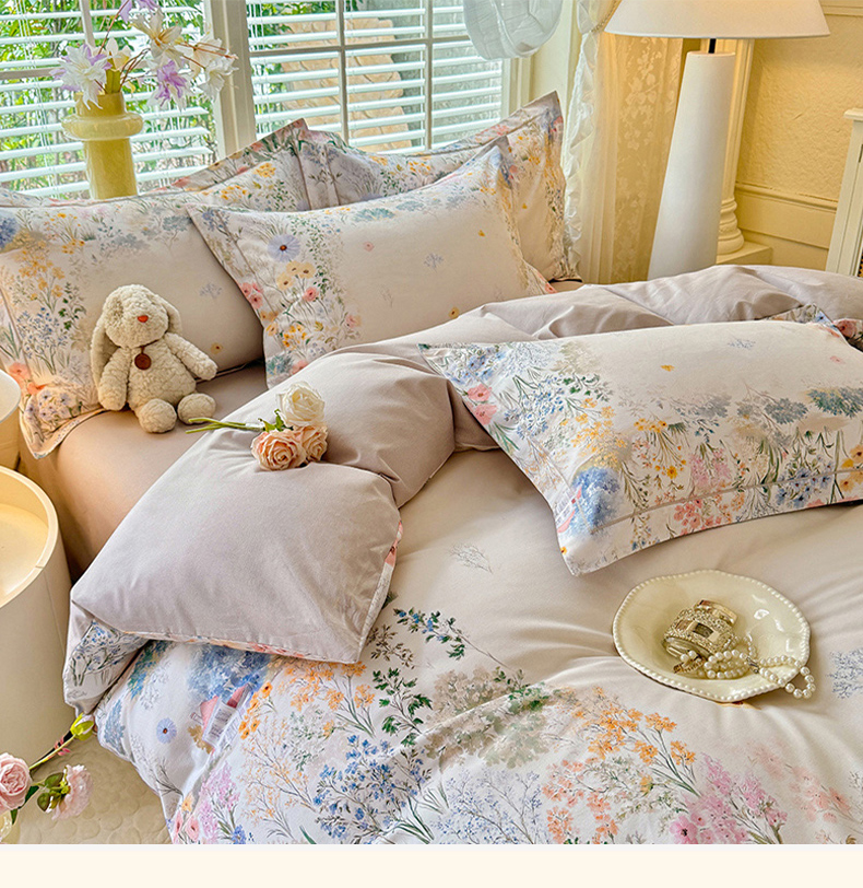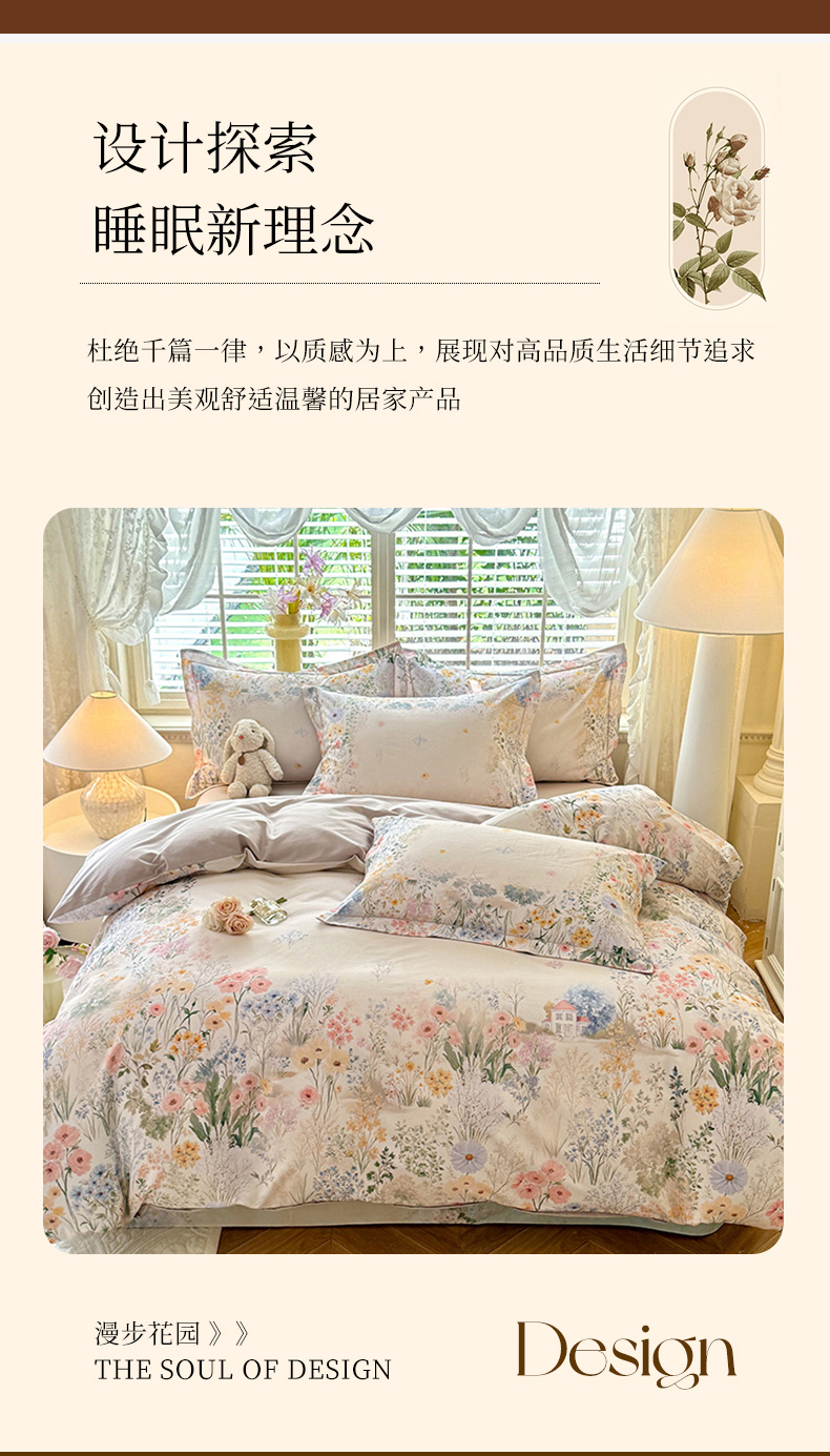 当前位置: 91家纺网 > 商品网购 > 床品套件 > 四件套 > 全棉普通四件套 > 巧玲珑 2025新款100%数码印花生态AB版四件套 D淡雅如梦