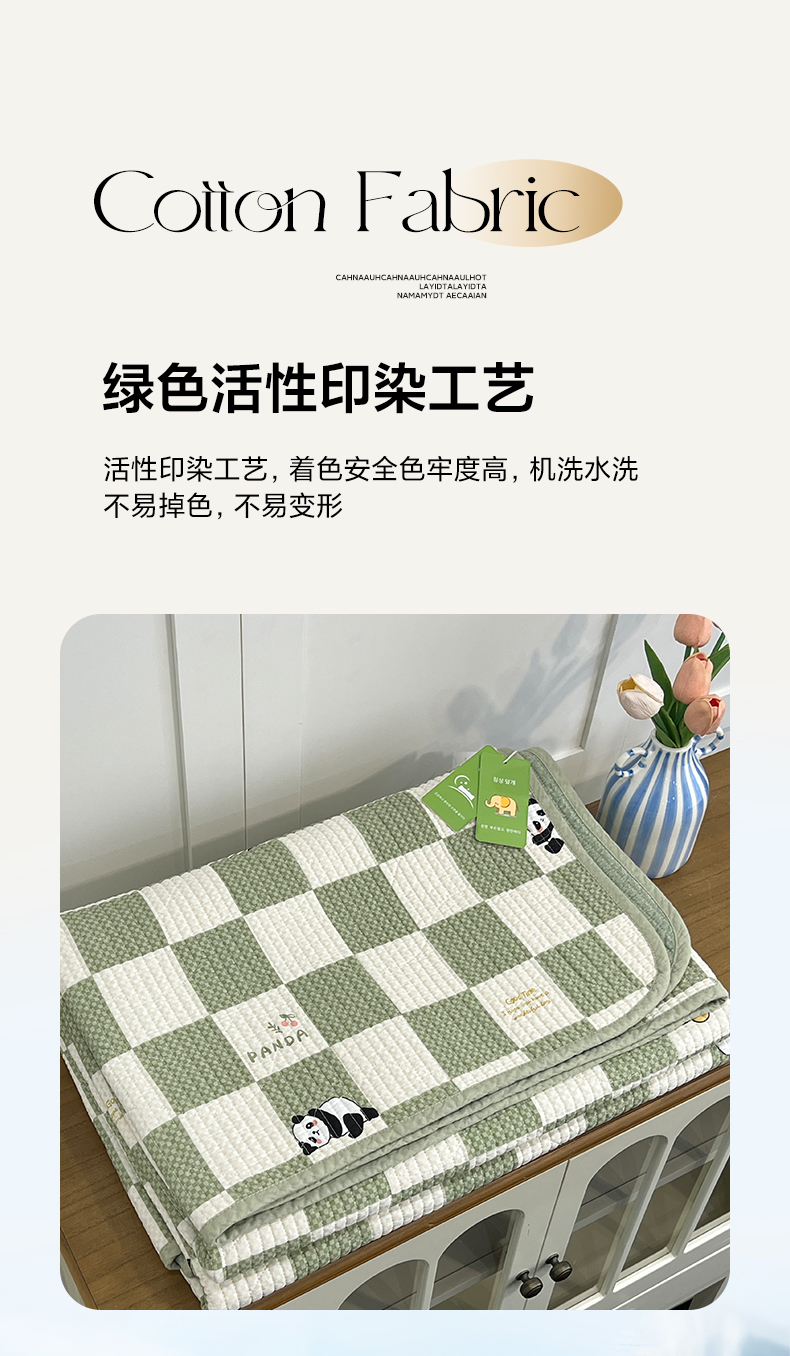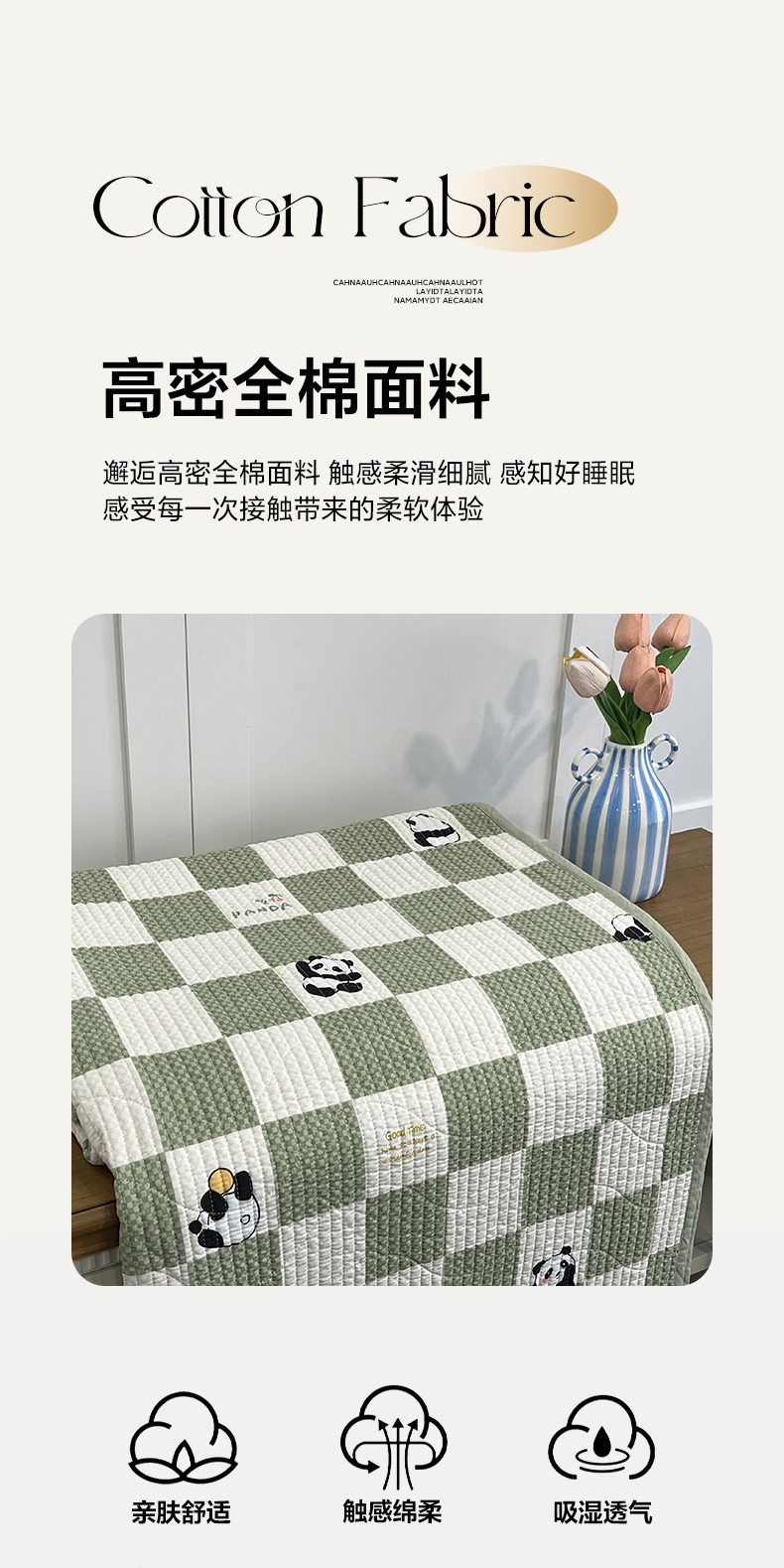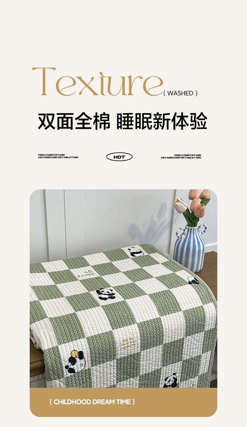 商品名称:沐纯家居 2025新款跑量款双面纯棉印花水洗床盖 绿格熊猫