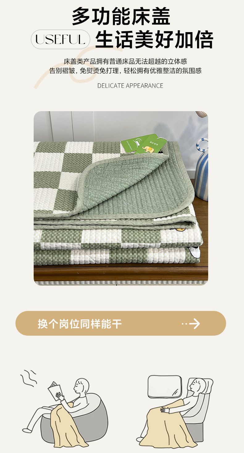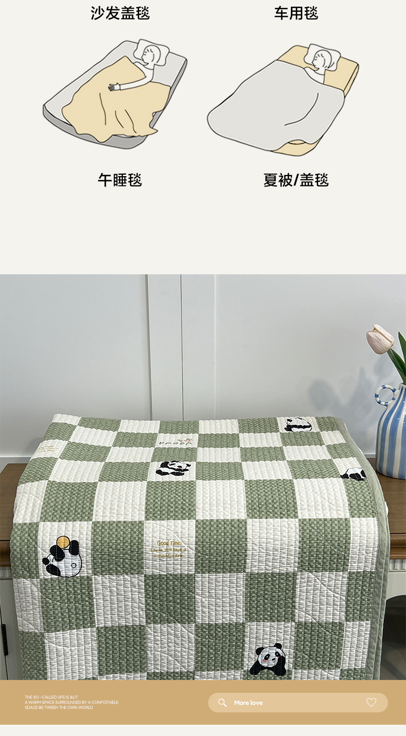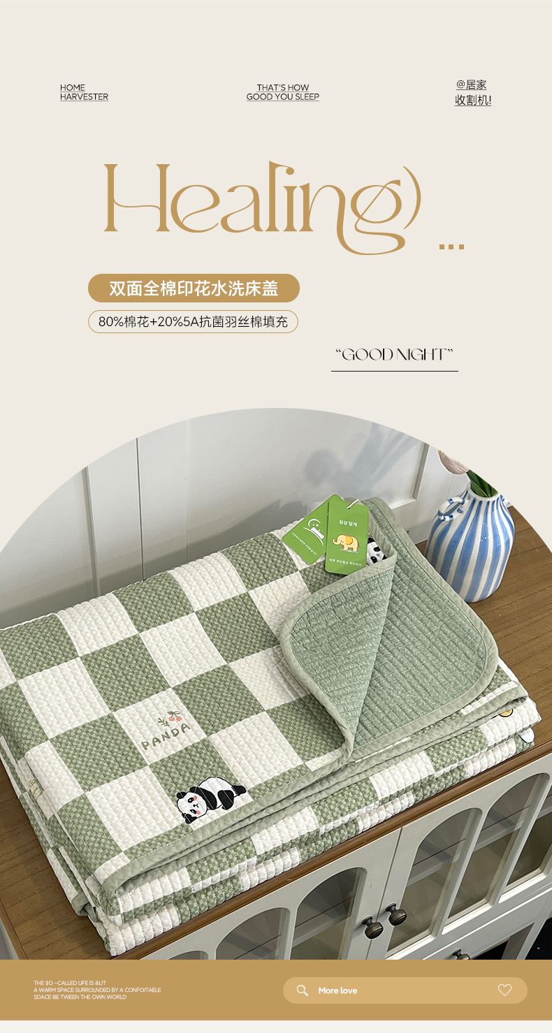 商品名称:沐纯家居 2025新款跑量款双面纯棉印花水洗床盖 绿格熊猫